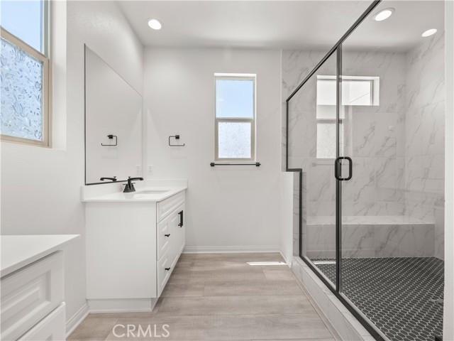 Elegant Valencia Home For Rent. Welcome to 27448 Pioneer Court, a beautiful, modern 3-bedroom, 2.5-bath home offering a perfect balance of luxury and comfort. This 2-story home has a bright and airy feel, and boasts an open floor plan with clean lines and plenty of large windows that let in natural light. Sleek gray luxury vinyl flooring is installed throughout the first floor, while recessed lighting is installed throughout the entire house. The kitchen is modern and sleek, equipped with high-end appliances and fixtures, ample cabinet space, and a large island with a breakfast bar. A switchback staircase leads to the freshly carpeted bedrooms, which are spacious and feature multiple windows and large walk-in closets. The primary bedroom has custom closets and a stunning private bathroom with a huge two-person walk-in rainfall shower with bench, and a separate water closet. Also upstairs is a separate laundry room with washer and dryer hookups. Further amenities include a beautifully landscaped backyard perfect for outdoor entertaining, and a spacious attached 2-car garage with installed EV charger and additional storage space. Solar panels have been installed to help curb energy costs. Conveniently located near shopping centers, restaurants, parks, and top-rated schools; with easy access to major highways and public transportation, this home is a must-see! Water and Gas included in the rent as well! Schedule a visit today.