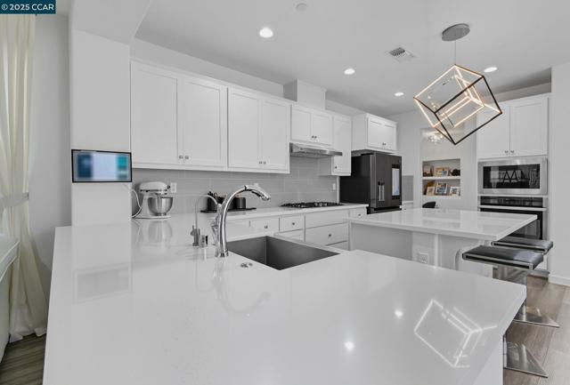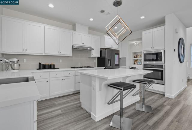 Submit Offer at list price and get $40,000 seller credit to buyers. Experience refined living in this exquisite 2019-built NORTH facing modern farmhouse in prestigious Cordes Village. Ideally located within walking distance to Cordes Elementary and Mountain House High school, this designer residence showcases over $150K in premium upgrades. Step inside to a luminous open-concept floor plan adorned with luxury vinyl plank flooring and expansive windows. The gourmet kitchen is a showpiece—featuring white shaker cabinetry, QUARTZ COUNTERTOPS, designer backsplash, stainless steel appliances, a grand island with seating, WALK-IN PANTRY, and custom DESK SPACE. The elegant living area and private den offer both comfort and versatility. Retreat to the luxurious primary suite with a spa-inspired bath—dual vanities, soaking tub, separate shower, and spacious walk-in closet. Two additional bedrooms and a stylish full bath complete the layout. A beautifully landscaped resort style backyard with covered patio, lovely entertaining areas for hosting parties. Additional highlights: Alexa-enabled smart home system, 8-ft doors, home theater & minibar in garage, motorized blinds, water softener/purifier, 220V EV pre-wire and SOLAR. Long driveway with 5 car parking spaces and motorized entry gate.