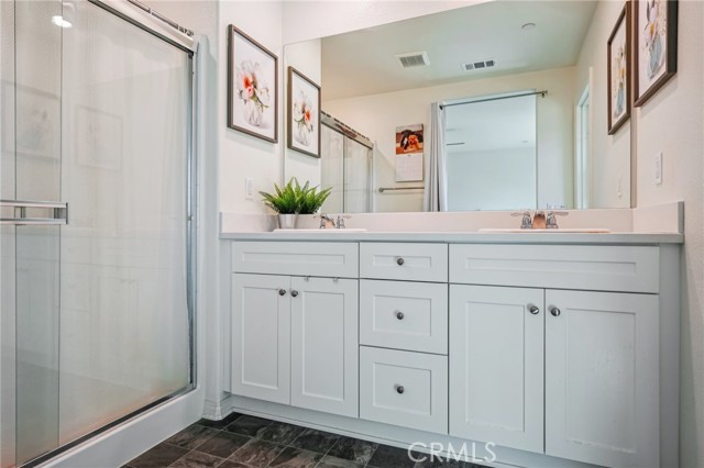 Like new home, Built in 2021, 3 bed/2.5 bath home located in the desirable Solera Community is ready to be made yours! The main floor is open and spacious with recessed lights, a modern chandelier over the dining area, lots of natural light, as well as a Quiet Cool System. The kitchen features stainless steel appliances, granite counters and backsplash, and white cabinetry. All of the bedrooms are located on the 2nd floor, are generously sized, and have ceiling fans. The large primary suite offers a walk-in closet as well as private ensuite with dual sink vanity and full-size walk-in shower. There is also a full-size hall bathroom for the 2 secondary bedrooms to share, and a half bathroom on the main floor for guests. Also enjoy the gated front patio area with low maintenance concrete. This home also has Solar Panels, an attached 2-Car garage, and in-unit laundry room! Residents get to enjoy a sparkling pool and spa, covered patio area by the pool, BBQs, and a playground with picnic area. Conveniently located across the street from Murrieta Valley High School, as well as shopping, dining, and not far from the 15 & 215 Fwys. Set up your tour today!