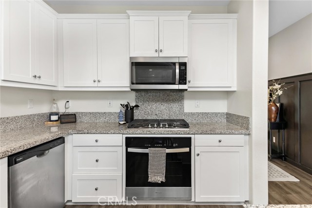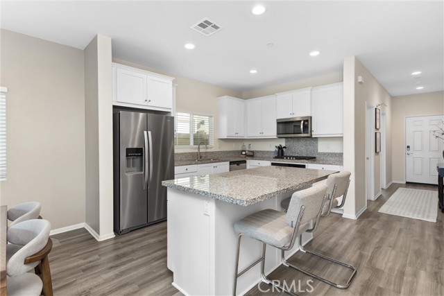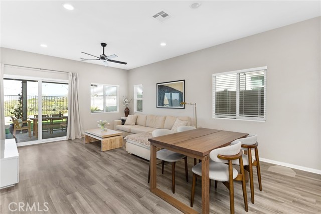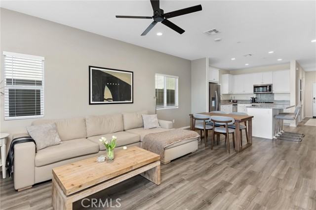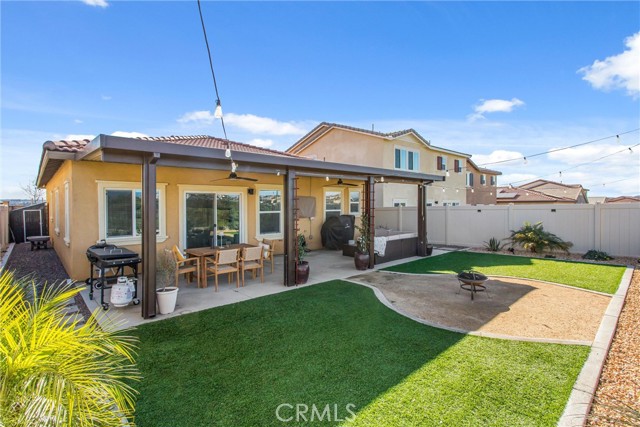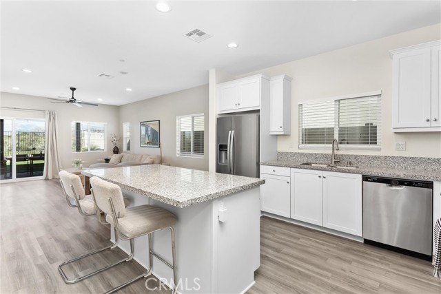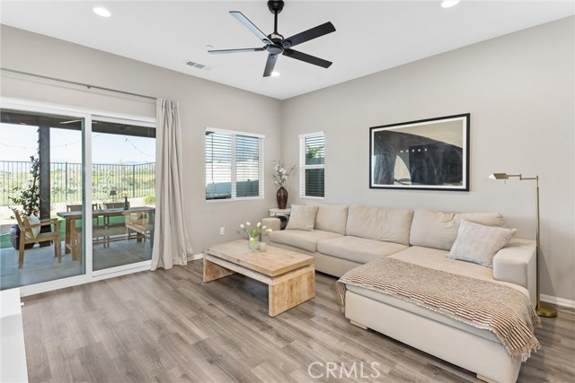Beautiful single story home offering 3 bedrooms and 2 bathrooms with 1331 sq ft of thoughtfully designed living space. This home features an open floor plan with upgrades throughout, including laminate flooring and granite countertops that complement the light and airy interior. Carpet in bedrooms keeping it comfy and warm. Primary bedroom is spacious and includes primary bath with dual sinks and shower. All rooms are a great size with plenty of space. There are blinds throughout. Two car garage. Enjoy stunning views and beautifully landscaped front and backyard with low maintained turf. Beautiful planters with drip system. The backyard is perfect for relaxing and or entertaining, includes alum wood patio cover with recess lighting and ceiling fans, creating an ideal outdoor living space. Ideally located backing up to the Tukwet golf course, this property provides both privacy and scenic surroundings. Situated in the Fairway Canyon Community, residents enjoy resort-style amenities including a spa, two Olympic size pools, a junior lap pool splash pad, gym, clubhouse and multiple parks and sports parks. The community offers events for residents throughout the year. This is a must see home perfect for first time buyer, maybe you need to downsize or just want the perfect amount of space.