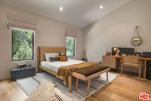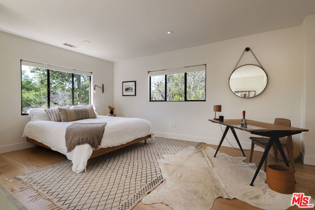 Rare, warm modern architectural retreat in prime Hancock Park. Over 1/3 acre of total privacy, including a bubbling creek, all overlooking the 8th Fairway of Wilshire Country Club and views extending beyond to the Hollywood Hills. Enter a serene world reminiscent of California wine country yet situated on a private cul-de-sac in a most prime location. This stunning architectural residence spans over 6,000 square feet of meticulous design and execution of the highest quality, rarely found on the market today. Flooded with natural light, beamed and vaulted ceilings, and a carefully designed layout that flows effortlessly to the outside for perfect indoor-outdoor living and entertaining. From the chef's kitchen to 6 bedrooms culminating in a primary suite that is a world unto itself. This has it all, including state of the art air filtration and water purification systems. Just a stone's throw from Larchmont Village, this is truly a rare and special offering.