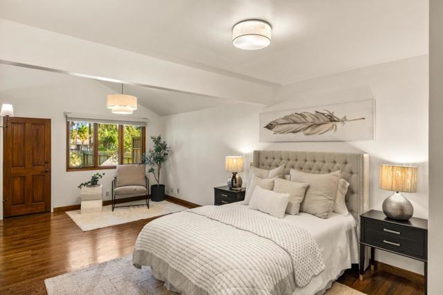 Rustic and urbane are not two words typically used together to characterize the mood of a place, but in the case of this single-level home in Pacific Grove, they fit perfectly. A wood-burning rock fireplace foretells intimate evenings spent in the glow of crackling flames, a book or glass of whisky in hand as you let yourself sink pleasurably into the tranquil stillness of night. Walk in the shadows of mature oak trees through your fenced yard, breathing in that cool, misty ocean air as you tune into the roar of the Pacific. Everything about life in Pacific Grove feels restorative to both intellect and spirit, as the promise of your next sunset stroll down Asilomar State Beach enlivens each day. And you're seconds down the street from the gate into Pebble Beach, where you can drive along iconic 17 Mile Drive, golf at MPCC, or walk the nature trails that wind through the forest. Back at home, each finish has a gorgeous, organic purity to it. Run your fingers along knotty, weathered gray wood panels. Or note how the light reflects off the earthy copper kitchen sink, shimmering against green stone countertops in shades of rich russet and bronze. With nearly 11,000 square feet of land, there is ample space for an ADU that mirrors the singular type of sophistication on display here.
