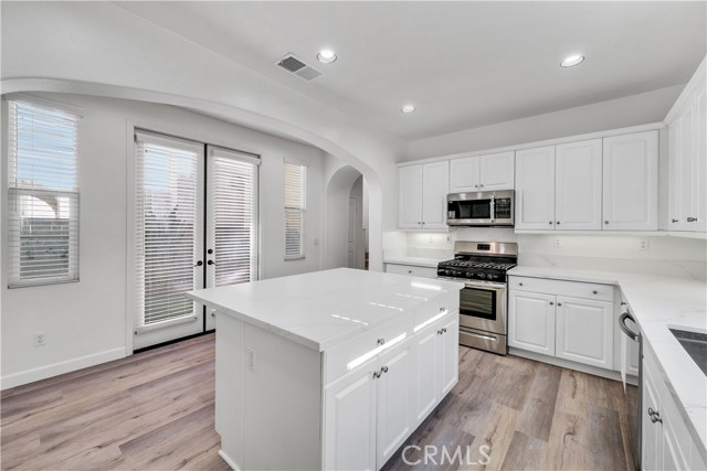 AN ABSOLUTELY STUNNING PROPERTY! ALMOST EVERYTHING IS NEW! It's a "10+"! This delightful home is warm, inviting and has a fantastic floorplan for perfect entertaining. Popular & desirable "Cantada Square" newer gated community in Anaheim, built by Brookfield Homes. Quiet, relaxing community ambiance is beautifully maintained by the HOA. Outstanding quiet interior location, fabulous two story model; three bedrooms + large upstairs loft (could be used as 4th bedroom) and 2.5 bathrooms. At almost 2,300 SQFT this single family residence has a great open & airy feeling! Lots of windows make it light, bright & airy. Upon entering you will find a perfectly flowing floor plan. Warm and inviting living room with fireplace, brand new waterproof laminate flooring throughout whole house. Powder room with white pedestal sink. Freshly interior painted, brand new blinds throughout. LED recessed lighting, gorgeous remodeled chef's kitchen with Quartz countertops, shaker style white cabinets, brand new stainless steel/black appliances. Tranquil master suite with a resort style bath (white oval soaking bathtub & separate shower), with cozy balcony and spacious walk-in closets. All 3 bedrooms are generous sized. Extra large handy laundry room downstairs with plenty of cabinets. Directly access to 2 car garage. French door leading to side patio for gardening, relaxing, BBQ, morning coffee and perfect outdoor entertaining. Central air conditioning/heat. Enjoy greenery and association BBQ with family and friends! Convenient location, close to schools, malls, banks, shopping centers, church, Disneyland, and it's also near to Dad Miller Golf Course.