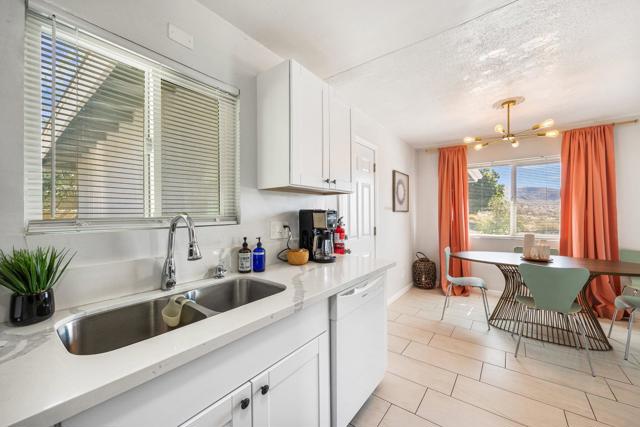Welcome to your tranquil oasis at 13215 Deodar Avenue in Desert Hot Springs, CA. Nestled above The Spa Zone, this charming remodeled mid century home features 2 bedrooms and 1 bathroom, spanning 968 square feet of well-designed living space on a generous 0.17-acre lot. Offered Turnkey furnished!As you step inside, you'll be greeted by a tastefully updated kitchen with newer cabinetry . The modern aesthetic continues contemporary laminate flooring and enhanced lighting, creating an inviting atmosphere. Recently painted walls, updated baseboards, and new panel doors contribute to a polished and contemporary look.The bathroom has been completely remodeled with a new shower/tub combination, elegant tile work, and an updated vanity and fixtures. Enjoy year-round comfort with a newly installed central heating and air conditioning system. Updated dual pane windows and sliders throughout with an attached 2 car garage and laundry area.The backyard invites you to relax under a covered patio, where you can soak in partial views of the San Gorgonio Mountains, dine al fresco and enjoy your private hot tub. The front yard is beautifully landscaped with desert-friendly plants and a welcoming walkway that enhances the home's curb appeal.Nestled in a peaceful neighborhood, this property provides easy access to local shopping and dining options, as well as the vibrant attractions of the Coachella Valley. Its convenient proximity to Palm Springs Airport adds to the appeal of this serene retreat. For more information or to schedule a private tour, please contact your local real estate expert. Home is an active short term rental, appointment required, do not disturb occupants. Thank you! Now available for long term lease, also for sale. Landlord maintains Gardener, tenant to pay all utilities and maintain hot tub