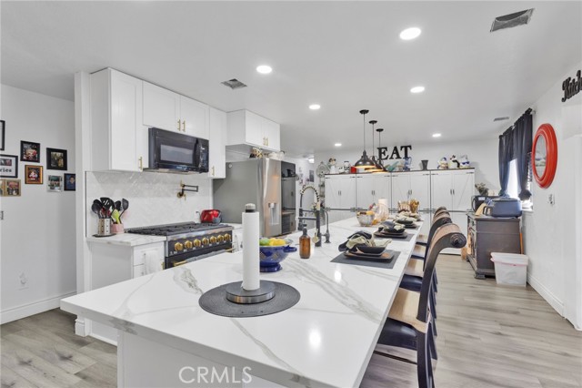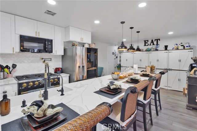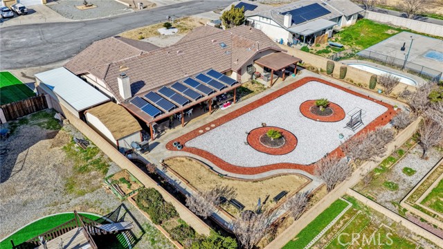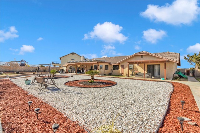 Welcome to this beautifully updated 3-bedroom, 2-bath Apple Valley home offering comfort, functionality, and energy efficiency. The remodeled kitchen is a true showstopper, featuring a 36” range, farmhouse-style deep sink, pot filler above the cooktop, built-in microwave, and ample cabinetry—perfect for everyday living and entertaining. Recent upgrades include new carpet, new septic system, updated fireplace, and new ceiling fans in every room. The spacious primary suite offers a walk-in closet and plenty of storage throughout the home. A dedicated laundry room with washer and dryer included adds everyday convenience. Outside, enjoy a fully enclosed backyard with block wall fencing, two covered patios, a oversized shed and a fully functioning 7-seat Jacuzzi—ideal for relaxing or hosting. The property also boasts a 3-car garage with workshop area, a large covered carport, and 14 paid-off commercial solar panels for long-term energy savings. This home truly has it all—space, upgrades, and value. A must see!