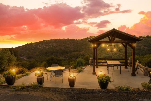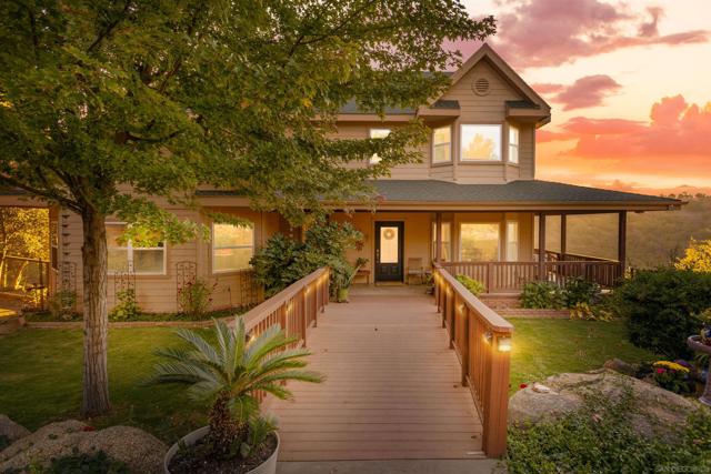 Welcome to your private sanctuary nestled in one of the area’s most desirable neighborhoods. Just minutes away from Historic Julian and Santa Ysabel, this stunning 5-bedroom, 3-bath home offers the perfect blend of modern comfort and natural beauty, situated on a picturesque 2.5-acre parcel filled with mature trees, landscaped pathways, westerly views and peaceful outdoor living spaces. Step inside to an airy, open-concept floor plan bathed in natural light, with soaring ceilings and expansive windows that frame breathtaking sunset views to the west. The primary bedroom is conveniently located on the first floor, offering privacy and comfort with easy access to the main living areas. Entertain & relax outdoors with multiple seating areas, a spacious patio, and a charming gazebo—perfect for gatherings or quiet evenings under the stars. Eco-conscious features include a fully paid-off solar system, grey water and rainwater catchment systems, helping you live more sustainably without sacrificing convenience. A large attached garage/workshop provides ample space for hobbies, storage, or a home-based business. The custom-built, detached bonus building, currently used as a music studio, offers endless possibilities — ideal for a workshop, art studio, home office, gym, or creative retreat. With its flexible layout and separate access, it’s the perfect space to bring your creative passions or projects to life. There is also a whole-house water filtration system with reverse osmosis at the kitchen sink. This property is more than a home—it’s a lifestyle.