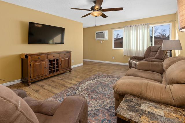 Rarely available, parklike, SINGLE-LEVEL condo just steps from the Santee's top-rated Woodglen Vista Park & Dog Park. Enjoy your own private garage plus an additional assigned parking space. Full-sized washer & dryer in the unit. Tucked in the back, this property feels like a detached home with no one above and a large fully fenced private front yard. Brand new A/C unit & flooring. Recent kitchen remodel maximizes extra cabinet storage. Owners can access 2 community sparkling pools and playground areas. Conveniently located near Santee shopping and freeways. Walk to Woodglen Vista Park w/ Dog Park, Baseball Fields, Tennis, Basketball Court, Playground, Skate Park, BBQ & Picnic areas. Walk to Canyon Park Elementary School K-8. Close to 52, 67 & 125 Freeways. 3 miles to Santee Town Center. 3.5 Miles to Santee Lakes. Don't miss this opportunity. This Home has it ALL! Don't Miss it!