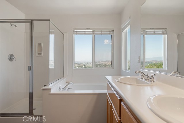 Welcome to the Sienna Ridge community within the Shangri-La neighborhood, perched atop a tranquil hillside in one of Canyon Country’s most desirable neighborhoods - where comfort, style, and stunning panoramic valley and mountain views come together. This inviting 4-bedroom, 3-bathroom home spans approximately 2,353 sqft and is thoughtfully designed for modern living. The flexible layout includes a downstairs bedroom with a full bath, ideal for hosting guests, multigenerational living, or a private home office. The main living features a dual-sided gas fireplace that connects the living and dining rooms, while abundant natural light creates a warm and welcoming atmosphere throughout. The kitchen is built for both entertaining and everyday functionality, featuring a center island, walk-in pantry, and ceramic tile counters. Just off the dining area, you’ll find a private patio where you can take in sweeping valley and mountain views. A perfect setting for morning coffee, evening sunsets, or weekend gatherings with friends. Upstairs, discover a spacious loft with a built-in study nook, perfect for working or learning from home. A dedicated laundry room and two spacious bedrooms with mirrored closet doors add convenience and functionality. The large primary suite offers a peaceful retreat with dual walk-in closets and panoramic views of the hills and city lights. Beyond the home itself, residents of Sienna Ridge enjoy access to a community pool and well-maintained common areas, creating a true neighborhood lifestyle. The monthly HOA fee of $275 covers water service, simplifying your utilities. Conveniently located, this home puts you just minutes from grocery stores, the public library, and a mix of local and chain restaurants. With quick access to the 14 Freeway, commuting is easy. Best of all, there are no Mello Roos fees, so you can enjoy the benefits without extra costs. Move-in ready and waiting for you to make it your own, come experience life at 27635 Sienna Ridge Row.