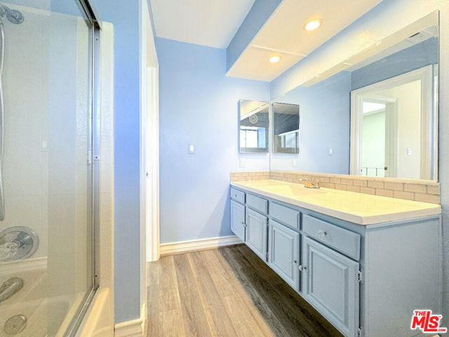 Experience the perfect blend of privacy and sophistication in this rarely available Greenbriar townhome-style residence. Tucked away at the end of a quiet, oak-shaded cul-de-sac, this 2-bedroom, 2.5-bathroom home offers 1,373 square feet of light-filled living space designed for both comfort and entertaining. A classic fireplace anchors the expansive living room, creating an immediate sense of scale and warmth. The open-concept layout transitions seamlessly into a modern kitchen featuring stone countertops and a breakfast bar, while double doors lead to a generous, enclosed private patio, an ideal sanctuary for al fresco dining. The upper level is thoughtfully configured with dual primary suites, each boasting soaring vaulted ceilings, ample closet space, and private en-suite baths. Residents enjoy an attached two-car garage with direct interior access, upper-level laundry convenience, and the peace of mind provided by central HVAC. Located just steps from the sparkling community pool and spa, and minutes from Thousand Oaks' premier shopping and dining, this home offers a turnkey lifestyle in the heart of the Conejo Valley.