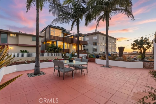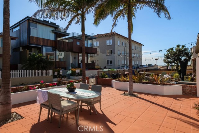 Welcome to this rare classic Hermosa Walkstreet home with an income unit, located just four houses from The Strand in the heart of Hermosa Beach. The remodeled front residence offers two bedrooms plus a third bedroom or office. A separate studio unit is located at the rear and is well suited for owner-users, extended family, or rental income. A spacious patio framed by mature landscaping and palm trees creates a welcoming outdoor setting for relaxing and entertaining. The main home is entered on the second level, where a generous ocean-view deck provides an ideal space for gatherings and sunset views. Inside, the residence has been updated with oak flooring, vaulted ceilings, and a fireplace serving the living and dining areas. French doors open to the ocean-view patio, allowing for easy indoor-outdoor living. The primary bedroom includes an en-suite remodeled bathroom. A second bedroom and an additional remodeled bathroom are also located on this level. The third level offers a spacious loft ideal for use as a third bedroom or flexible living area, complete with an attached half bath. Additional features include an extra bathroom off the garage and a bonus flex space or closet area. At the rear of the property is a separate studio unit with its own private entrance from 10th Court. This unit features vinyl flooring along with a remodeled kitchen and bathroom, making it well suited for guests, rental use, or extended family. The property features a private rear driveway accessed from 10th Court, complete with newly painted concrete and fresh landscaping. It offers parking for up to six vehicles, including a two-car garage and additional space for four cars in the driveway. Situated in the Sand Section near the beach, pier, and local dining, this Hermosa Beach duplex presents a rare opportunity to own a versatile coastal property in an exceptional location.