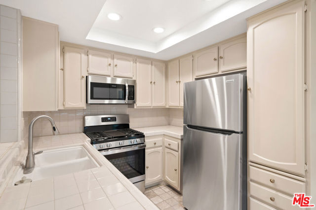 Rare wonderful 2bd/2ba town home in desirable Beverly Hills adjacent location. This unit offers the ultimate in privacy providing lots of light and panoramic views with a private roof deck and lounge. Open living room flows seamlessly into the dining area/kitchen, featuring new s/s appliances, fresh paint throughout and new floor. A staircase leads to the upper bedrooms level. The primary bedroom offers an en suite full bath, as well as the second bedroom, which can also serve as a flex space such as an office or a second master. A separate laundry room with a full size washer/dryer and sink adds to the convenience of in town living. Large private roof patio with long chairs, umbrella, fountain and water hose for outdoor plants. Ideal for suntanning, diner, bbq and entertaining. Large two car tandem parking space and extra storage. Close to Robertson Blvd, Beverly Center for shops/restaurants, La Cienega park and Beverly Hills tennis court only a block away. Come for a visit, easy to show.