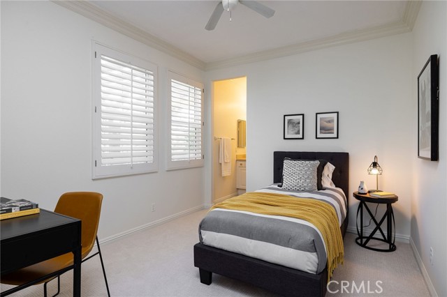 Set on a peaceful cul-de-sac in the sought-after Terramor tract of Ladera Ranch, this turnkey home offers effortless indoor-outdoor living with a backyard retreat? and ideal casita. Located just across from the community water park and within walking distance to distinguished schools, the property greets you through a gated entry and charming courtyard that connects the main residence, backyard, and a casita that is perfect for a home office. Inside, the full interior has been refreshed with new paint and carpet. The open, flowing floor plan includes a living room with a cozy fireplace and built-ins, and the kitchen with granite countertops, all-white cabinetry, and a center island ideal for casual meals and conversation. Plantation shutters throughout invite natural light, and the kitchen opens effortlessly to the outdoor patio. The main level also includes a powder room and dedicated laundry room with direct access to the 2-car attached garage. Upstairs, the spacious primary suite includes a walk-in closet with built-in organizers and an en-suite bath with double vanity, soaking tub, and frameless shower. Two additional bedrooms share a Jack-and-Jill bathroom with separate vanities, while a flexible fourth bedroom/bonus room opens to its own balcony. The relaxing backyard boasts mature landscaping, a covered patio, grassy lawn, and circular seating area perfect for gatherings. As an added benefit, the home also features leased solar for energy efficiency. Residents enjoy outstanding community amenities including the neighboring waterpark, pools, hiking trails, biking trails, disc golf, and a skate park, with easy access to dining, shopping and local freeways. This is a rare opportunity to own a versatile floor plan in one of Ladera Ranch's most desirable neighborhood and location.