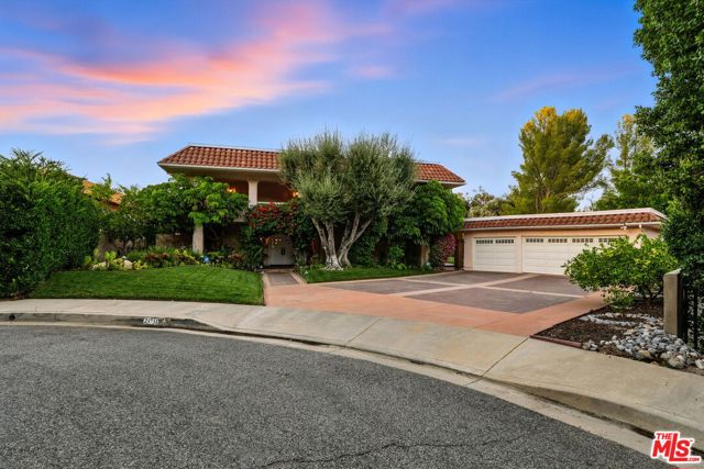 Situated on a premier cul-de-sac in Calabasas Park, just minutes from the best the city has to offer, this beautifully appointed four-bedroom home features an impressive yard and a layout designed for comfortable everyday living and effortless entertaining. Living and dining spaces flow seamlessly to a spectacular outdoor setting with exceptional views. The expansive backyard is ideal for both relaxation and entertaining, highlighted by a viewing deck with sweeping valley-to-mountain views, a sparkling pool, lush landscaping, and mature citrus trees. A chef's kitchen features designer finishes including Taj Mahal quartzite countertops, a soapstone island, and classic Saltillo tile flooring. The primary suite offers a private retreat with a spa-inspired bathroom, generous walk-in closet, and a soaking tub positioned to enjoy the views. A versatile bonus room can easily function as a home office, gym, or recreation space and offers access to a private rooftop deck. Three additional bedrooms provide comfortable accommodations, ample storage, and flexibility for guests or work-from-home needs. As part of Calabasas Park, residents enjoy access to the community lake for walking and recreation, along with close proximity to The Commons, Saturday's farmers market, award-winning Las Virgenes Unified School District schools, top private schools, and excellent dining options.