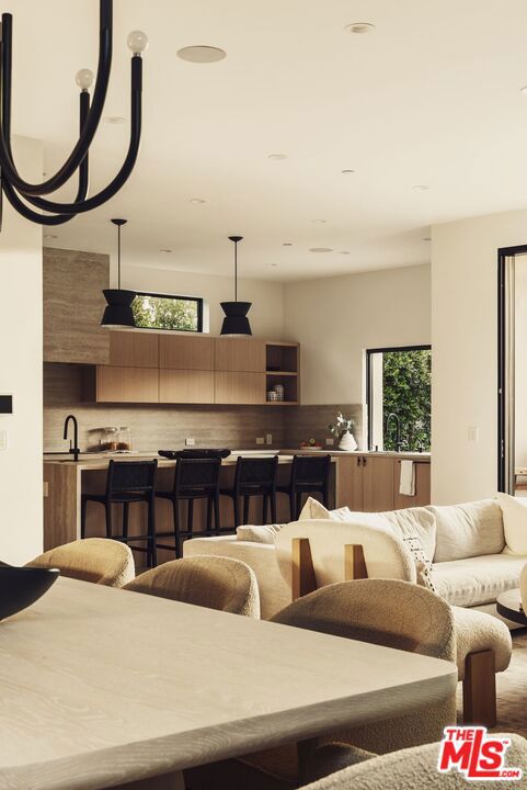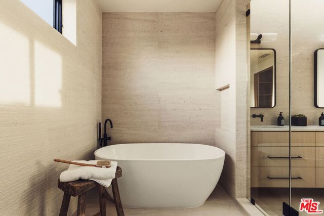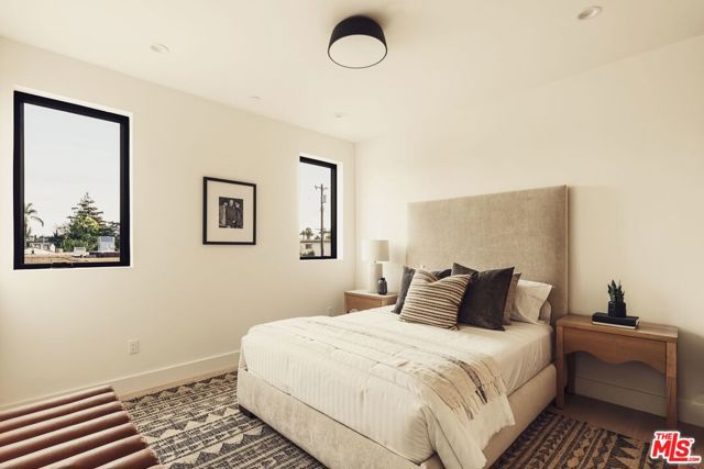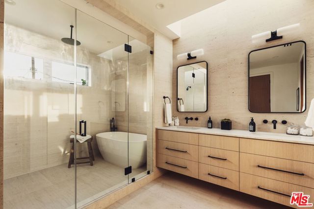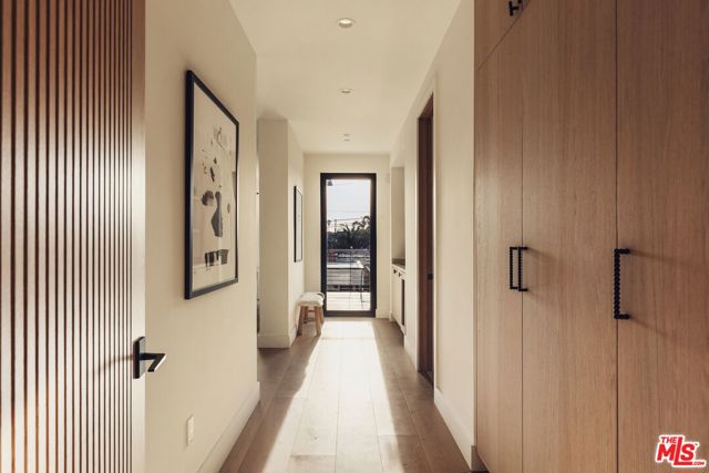 Located in the highly desirable east of Lincoln neighborhood in Venice, this quiet, tree-lined enclave is one of the Westside's most coveted residential pockets, offering rare privacy just moments from the coast. Designed for modern coastal living, this newly constructed residence blends warm organic materials with clean architectural lines to create a relaxed yet elevated atmosphere only blocks from the beach. A dramatic entry opens to a light-filled open layout with oversized Italian porcelain flooring, a media lounge, formal dining area, and a chef's kitchen featuring Wolf and Sub-Zero appliances, custom cabinetry, a walk-in pantry, and an oversized island anchoring the fireplace-adjacent living space. Expansive retractable glass doors open seamlessly to a resort-style backyard with a custom pool and spa, built-in outdoor dining, and a detached guest house with corner pocket doors ideal for a studio, office, gym, or guest retreat, all surrounded by mature ficus hedges for exceptional privacy. Floating French oak stairs lead to a sun-drenched primary suite with a private terrace, spa-inspired bath, custom bar, and a sleek European-style walk-in closet, while three additional en-suite bedrooms, a central lounge, and a laundry room complete the upper level. Thoughtfully curated with high-end designer finishes throughout, this smart home features integrated lighting, sound, security, and climate systems along with energy-efficient infrastructure for modern living. Set on a rare oversized lot near Abbot Kinney, Rose Avenue, Erewhon, and the Venice Boardwalk, the home seamlessly balances architectural distinction with coastal convenience, offering a refined setting for both entertaining and everyday living.
