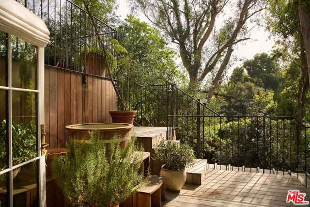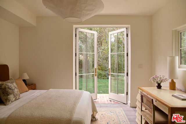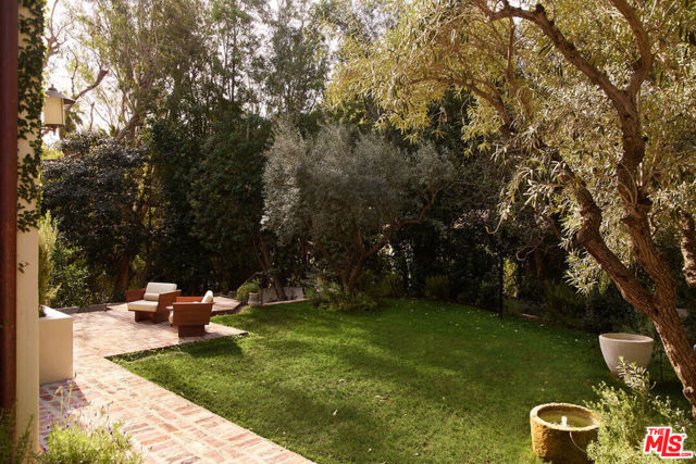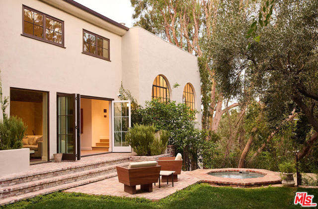 Nestled on a serene discreet street, this expansive Spanish estate embodies timeless elegance. Originally designed by architect Fred Smathers and exquisitely reimagined by Broad Project, the home seamlessly blends classical architecture with modern sophistication. Thoughtfully updated, this five-bedroom, five-bathroom residence is enveloped by lush, mature landscaping, including stately olive, citrus, and eucalyptus trees. A shimmering pool and spa, multiple outdoor living areas, and an exceptional floor plan create a truly idyllic retreat. Stepping through the foyer, you are welcomed by stunning European oak floors that set the tone for the home's refined aesthetic. The soaring living room ceilings enhance its sense of grandeur, while a large picture window bathes the space in dappled natural light. A striking fireplace, framed by Roman clay walls, serves as a focal point, complemented by bespoke built-in cabinetry and Fortuny lighting. The kitchen is a true masterpiece, featuring arched steel windows, a coveted Lacanche range, and a meticulously crafted solid oak island. Designed for both beauty and function, it flows seamlessly into the informal living room, where French bifold doors open to an expansive outdoor sanctuary ideal for effortless indoor-outdoor living. The primary suite is a private haven of impeccable design, with French doors leading to a secluded patio. Its spa-like ensuite bath is adorned with old-growth walnut built-ins, a luxurious soaking tub, a walk-in steam shower, and a generous walk-in closet. Two additional bedroom suites each offer elegantly appointed baths and spacious walk-in closets. Adjacent to the pool, a separate living space with a bar provides exceptional versatility for entertaining. Complete with a sauna and cold plunge, it serves as a refined wellness retreat, perfectly suited as a home gym, office, or guest quarters. An exceptional property of beauty, tranquility, and understated luxury, offering warmth, privacy, and an unparalleled living experience.