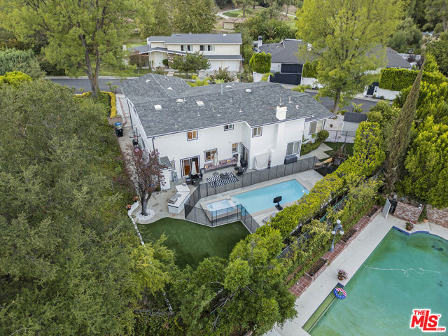 This fully renovated 5-bedroom, 5.5-bath, 3,614-square-foot residence is ideally located on a quiet cul-de-sac near Braemar Country Club in Tarzana. The home offers a bright, open floor plan highlighted by high ceilings, wood flooring, and refined living and dining areas designed for both entertaining and everyday comfort. High-end finishes and quality craftsmanship throughout create a sophisticated yet welcoming environment. The chef's kitchen features premium stainless steel appliances, custom cabinetry, quartz countertops, and an oversized center island, seamlessly connecting to inviting family spaces anchored by a fireplace. A main-level bedroom with an ensuite bath provides flexible use as a guest suite or home office. Upstairs, the primary suite serves as a private retreat with vaulted ceilings, a walk-in closet, and a spa-inspired bathroom. Additional bedrooms are generously sized and thoughtfully arranged, including two additional secondary bedrooms with its own ensuite bath and one beautifully updated bathroom with dual sinks. A private in-law suite on this level offers added comfort and versatility with its own full bath. Designed for seamless indoor-outdoor living, sliding glass doors open to a serene backyard retreat featuring a resort-style pool and spa, mature landscaping, multiple seating and dining areas, an outdoor BBQ, artificial turf play space, and a swing set. A pool safety fence and storage shed complete the outdoor setting. Offering privacy, elegance, and effortless livability, this exceptional residence presents a rare opportunity to lease a beautifully upgraded home in one of Tarzana's most desirable neighborhoods.