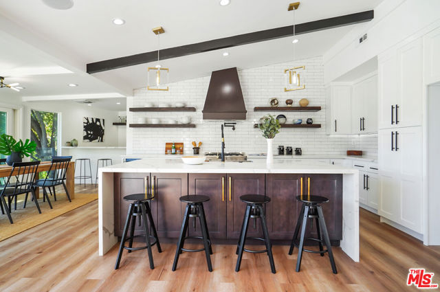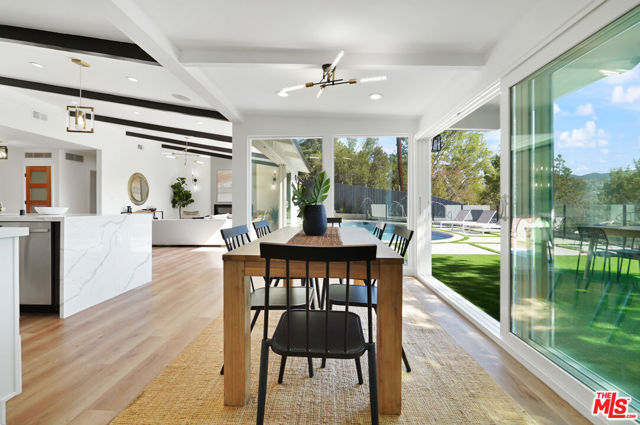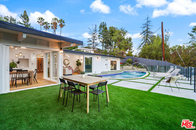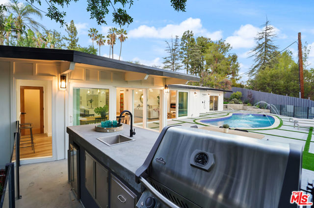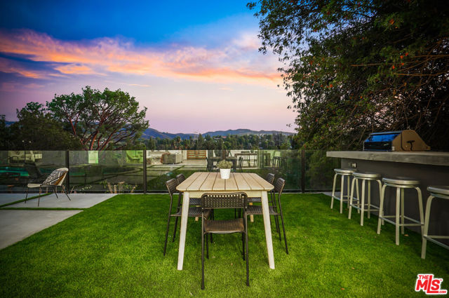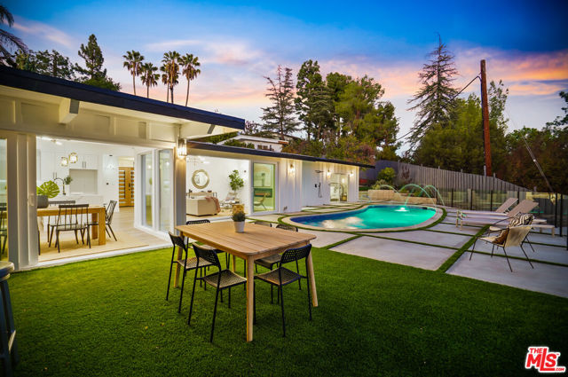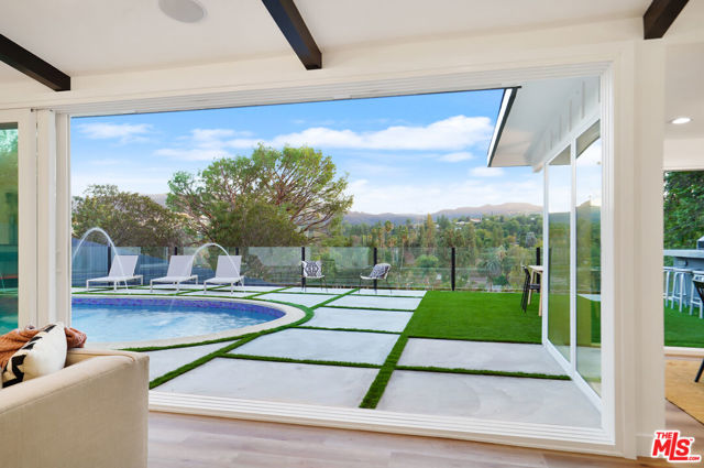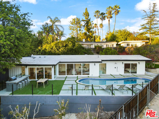 Fully Furnished stunner available immediately for rent. Breathtaking Midcentury Modern style Stunner Home featuring gorgeous Panoramic Sunset & Tree Views South of Ventura Blvd! Situated high up on the Hill, this tastefully remodeled house takes full advantage of its Premier Perch. Enter into a bright, spacious & hypnotizing living space largely open to the backyard & highlighting stunning chandeliers & light fixtures & a surround sound system all around. You'll notice the lovely open concept between the living, dining and kitchen spaces creating an incredible flow that will take your breath away with their unforgettable details. As the heart center of the home, the main living spaces are bathed in light and exude a warm welcoming vibe with a central electric fireplace perfect for family gatherings. The kitchen features stunning cabinets, captivating gold finishes & pendants, brand new stainless steel appliances, loads of storage space, gorgeous decorative shelves, a breakfast nook in addition to a large envious island perfect for your event Buffets. Large sliding glass doors & windows all around offer a very relaxing indoor-outdoor atmosphere leading to a stunning large pool with amazing water jet features, a fully equipped large BBQ Bar all looking into jetliner mountain & greenery views. The office offers a beautiful floor to ceiling window design and the hallway bathroom takes you on a Getaway Dream with its gorgeous Moroccan tiles. The Master Suite is one to die for! Wait till you see it.. The enormous & gorgeous entertaining backyard with its BBQ Bar, dining area, large firepit area is just perfect to step and relax outside & enjoy the amazing views. It offers plenty of room for large unforgettable family & friend gatherings, large special events, play... Neighborhood attractions include El Caballero Country Club, High end Golf courses, Marvin Braude Mulholland Gateway Park, Ventura Blvd and easy access to all the Best Shops & Entertainment! Very close to all the Freeways. Not to be missed!
