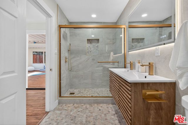 This beautiful, fully remodeled three-bedroom, three-bathroom single-family home features an open floor concept that's perfect for entertaining, with a seamless flow between the living, dining, and kitchen areas. The home has been extensively upgraded with all-new recessed lighting throughout, brand-new flooring, new countertops and cabinets, an updated HVAC system, fresh interior and exterior paint, and new tile in all bathrooms, along with brand-new vanities, bathtubs, and showers that add a modern, luxurious touch. The spacious master bedroom serves as a true retreat, complete with a beautifully designed primary bathroom that offers comfort and privacy for homeowners to enjoy together. This exquisite home also includes a one-car garage, a spacious backyard, and a BONUS SUNROOM attached to the back of house, offering an ideal space for home workouts, parties, gatherings, or relaxed hangouts. Located in a very cute and welcoming neighborhood, the property is ideal for spending quality time with friends and family both at home and nearby. Situated adjacent to Inglewood, the home is just minutes from SoFi Stadium, the Intuit Dome, and other popular attractions, placing entertainment and nightlife right at your doorstep.