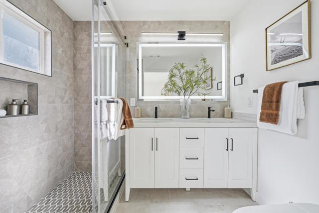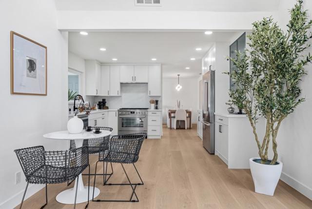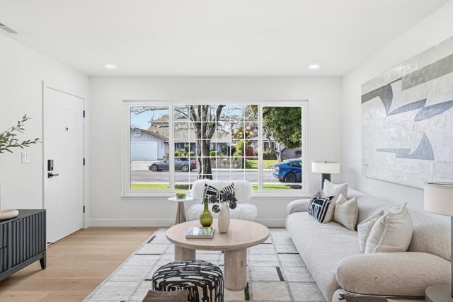 Welcome to this fully remodeled showpiece in Santa Clara's desirable Killarney Farms! This 4-bed, 3-bath home sits on a 7,200 sq ft rectangular lot and has been extensively upgraded with city permits, improving nearly everything except the framing. Step inside to 9.5" wide European Oak hardwood floors, soaring ceilings, and natural light streaming through oversized windows. The open layout connects a sunlit living room, elegant dining area, and a stunning kitchen with Calacatta Miraggio quartz, full backsplash, sleek white cabinets, and a suite of Bosch appliances. The family room features a dramatic two-story ceiling, electric fireplace, and oversized sliding doors to the backyard patio. Three bedrooms are on the main level, including a spacious primary suite with yard access and a luxury bath featuring Porcelanosa tile, dual Hansgrohe vanities, LED mirror, smart toilet, and walk-in shower. Upstairs offers a private guest room with full bath, ideal for in-laws or visitors. Upgrades include: new plumbing, 200A panel with garage subpanel & EV outlet, new HVAC & duct, new attic insulation, dual-pane windows, and all-new kitchen and baths. Low-maintenance turf in the front and a huge backyard with endless potential. Close to Apple, Nvidia, Kaiser & low-cost Santa Clara utilities.