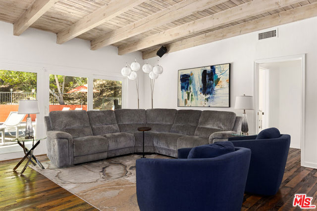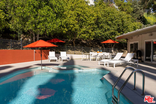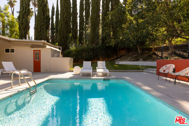 Nestled on a quiet cul-de-sac in a prime Woodland Hills location, this meticulously maintained mid-century home offers the perfect blend of comfort, style, and functionality. Freshly painted inside and out with a new roof in the last two years; the property reflects true pride of ownership. The main living space features timeless, reclaimed solid hardwood floors. Warm, inviting interiors create a cozy, yet stylish atmosphere, ready for your personal touches. Step outside to an updated pool and spa surrounded by drought tolerant landscaping and high-quality turf. Ideal for relaxing or entertaining year-round. Abundant storage throughout enhances everyday living, while the home's move-in-ready condition makes it an exceptional opportunity. Direct access two car garage, in addition to several driveway parking spaces. A rare find in a sought-after neighborhood, this is California living at its best.