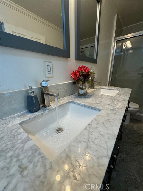 You’ll be impressed the moment you enter this beautifully upgraded 1-bedroom, 1.5-bath, two-story condo, offering the rare privacy of no one above or below you. Quality finishes shine throughout, including rich wood flooring, crown molding, and elegant baseboards. The main level features a spacious living room that flows seamlessly into the stylish, modern kitchen, designed for both everyday living and entertaining. The kitchen is equipped with sleek stainless-steel appliances, including a refrigerator, microwave, hood, and garbage disposal, along with ample counter space and pendant lighting over the breakfast bar. A sliding glass door opens to your private patio, perfect for morning coffee or evening BBQs. Upstairs, you’ll find a generously sized bedroom retreat, available furnished or unfurnished. The room features warm designer paint tones, ceiling lighting, a large closet, and furnishings that may include two beds, nightstands, dresser, and window drapes. The separate upstairs bathroom feels spa-like, showcasing a dual-sink vanity with storage drawers, framed mirrors, updated lighting, and a large tiled shower with frameless glass doors and a gentle shower head. Additional highlights include a detached one-car garage with extra storage, in-unit full-size washer and dryer, and thoughtful touches throughout that make this home both functional and inviting. Located in a highly desirable Anaheim neighborhood, this condo is just minutes from Disneyland, Angel Stadium, and the Honda Center, with convenient access to major freeways and all that Orange County has to offer. Don’t miss this opportunity to lease a beautifully maintained home in one of Anaheim’s most sought-after areas. Contact us today to schedule a private tour.