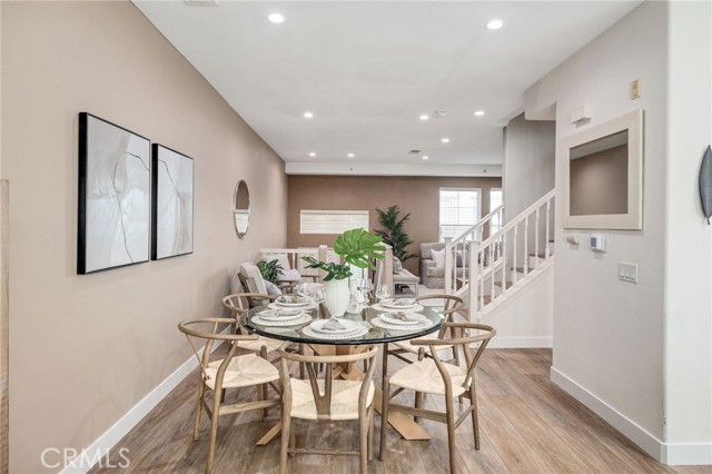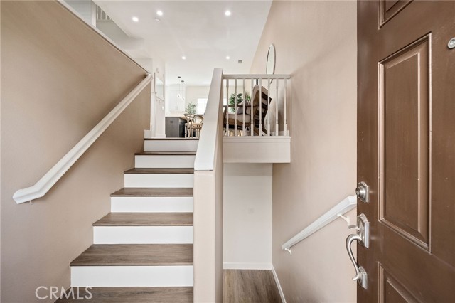 Love at first sight. This stunning, picture-perfect 4 bedrooms, 3.5 bath townhome is nestled in the gated community of Stonehaven. This exceptional home with high ceilings and lots of natural light is exquisitely designed and meticulously remodeled with modern upgrades and charm. The front door greets you to a formal entry and welcomes you to the main floor featuring the living room, a formal dining area, a breathtaking kitchen with breakfast bar, a culinary delight, designed with style and functionality, stainless steel appliances including a Kitchen-Aid commercial style range, microwave hood combo, French door refrigerator with filtered water system and a pantry. A guest bathroom completes this floor. Stairs lead you to the upper level boasting a spacious primary suite with walk-in-closet and a gorgeously designed bathroom with double sink vanity, separate shower and a soaking tub. Two well-appointed additional bedrooms that share a full bathroom with tub and shower complete this level. On the lower level, you will find a conveniently located fourth bedroom and a bathroom with shower, ideal as a private office or guest room. A large two car attached garage with direct access, laundry hookups, Shelves and Lift Master WI-FI garage door opener completes this level. Other outstanding features include gorgeous SPC flooring on first, second, third levels and stairs, Newer PEX repiping, additional insulation, central heating and air conditioning, recessed lighting, eight upgraded Simonton windows, shutters, a very cozy patio, and ample storage and cabinets.This is a home to create memories for many years to come. Destined to win your heart.