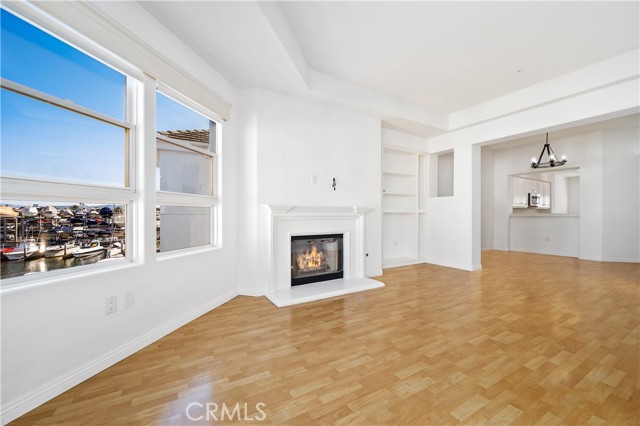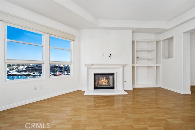 Embodying the idyllic California coastal lifestyle, this stunning waterfront residence is located within the gated and highly sought-after 28th Street Marina community in Newport Beach. Meticulously designed, the light-filled open floor plan flows seamlessly from room to room. Upon entry, high ceilings greet you and beautiful wood flooring, set an immediate tone of warmth that this home easily exudes. The chef’s kitchen is thoughtfully positioned at the heart of the home and features stainless steel appliances, including a double oven, generous counter space, and a spacious breakfast nook. Adjacent to the kitchen, the formal dining area opens to the inviting family room, highlighted by an elegant fireplace and oversized windows that flood the space with natural light. Step onto the private balcony where you will enjoy dramatic peninsula views, accessible directly from both the living room and the primary suite. The primary retreat offers serene water views and the master bath is complete with dual sinks, a jetted soaking tub, walk-in shower, and an expansive walk-in closet. The perfectly placed secondary bedroom is privately situated and accompanied by a nearby full bath. Additional features include in-unit laundry with washer and dryer, recessed lighting, fitted shutters, central air conditioning, and two assigned subterranean gated parking spaces, along with ample guest parking. A private elevator delivers you just steps from your front door—no stairs required. Ideally located near premier shopping, dining, and all that Newport Beach has to offer, this exceptional home truly has it all!