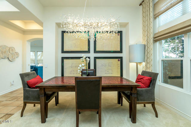 This one level, furnished home in the gated community of La Vina has been updated and upgraded with all of the latest and greatest tech features and amenities. The fully stocked kitchen which opens seamlessly with the spacious family room is designed for both function and style. There is a center island, hidden microwave and lots of counter space. The family room features a 70' LG flatscreen TV and a beautiful decorative chest. Two comfortable sofas include a pull-out queen bed for added versatility. A large full-length mirror and a house plant complete the inviting space, along with a new area rug and end tables to add charm. The serene primary suite offers a king-sized bed with a unique partition allowing individual control over each side of the bed. New nightstands with built-in lighting, accent lights, and Alexa-controlled features enhance the ambiance. Enjoy entertainment with the installed 70' LG TV. The primary bathroom is designed for ultimate relaxation, featuring new light fixtures and a walk-in bathtub for an elevated spa experience. A separate shower and a small vanity area with dual sinks complete the space. The living room and formal dining area have been newly carpeted and feature a custom mosaic and wood dining table with matching chairs. Recently updated, the second bathroom has a double sink vanity and new fixtures. The additional 2 bedrooms are also furnished with beds, nightstands and dressers and one of them as a 50' LG TV. Even the backyard has been furnished with patio furniture in order to enjoy the view.
