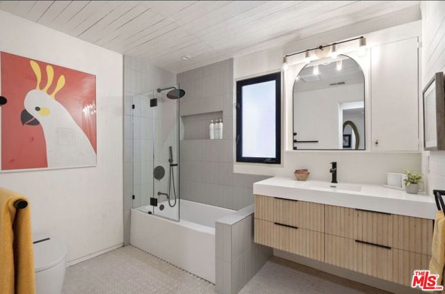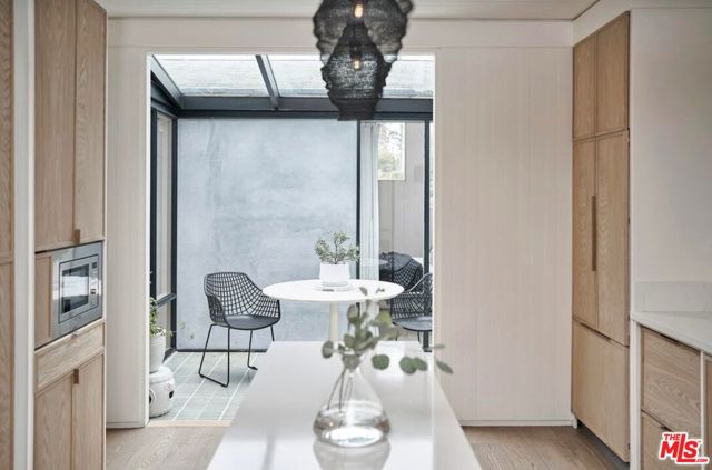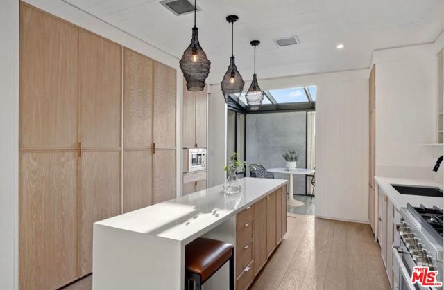 Mid-Century Modern retreat in Montecito's coveted coastal zone, just a short walk to the beach and Coast Village. Tucked behind gates and mature trees, this design-forward home blends privacy, walkability, and effortless indoor-outdoor living. Thoughtfully reimagined with modern finishes, the home features expansive windows, light-filled interiors, crisp white wide-plank floors, sleek fireplaces, and a custom minimalist kitchen with flat-panel cabinetry, integrated appliances, waterfall-edge island, and a distinctive green walk-in pantry. Spa-inspired bedroom suites and seamless flow to multiple sun-drenched decks create a resort-like feel, complete with an outdoor kitchen, fire-pit lounge, outdoor shower, and zen garden. Perfect as a primary residence, weekend escape, or luxury rental.