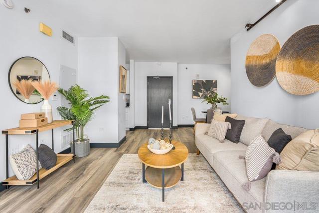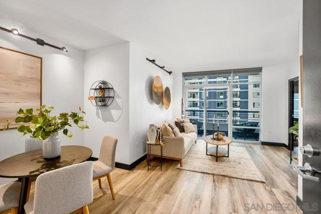 Upper-floor living in Aqua Vista Towers with a well-designed layout and city views from a private balcony. This residence offers a comfortable, modern feel with a functional kitchen and living space that truly works for everyday urban living. Enjoy year-round valet parking for one vehicle, conveniently located underneath the building and included with the HOA. Community amenities include an exercise room, pool, spa, and pet-friendly living with restrictions. Outstanding walkability places you steps from the restaurants, nightlife, and energy of Little Italy, with easy access to downtown San Diego, the Bay, and everything great about city living. A fantastic opportunity for low-maintenance, connected urban living with all the essentials in one of downtown’s most convenient locations.
