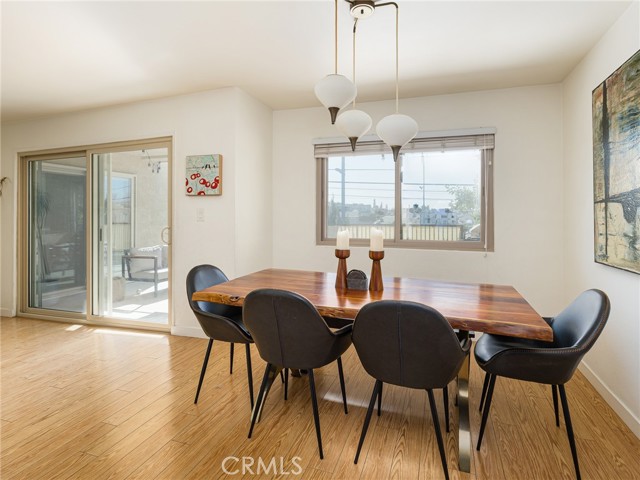 South-facing residence with an expansive deck and updated interior! This first floor, beautifully maintained home features a generously-sized living room with a gas fireplace. The living room flows directly to the elevated, ~500 square foot deck—ideal for indoor-outdoor living and entertaining. The galley kitchen and light-filled dining area sit adjacent to the living room. The kitchen is equipped with a 4-burner gas stove, dishwasher, and ample cabinetry. A dedicated laundry room with abundant storage space sits off the kitchen. The sleeping quarters of the home feature two bedrooms and two bathrooms updated with new vanities. The primary bedroom offers excellent natural light, two closets (including a walk-in with built-ins), an en-suite bathroom with a huge shower and dual vanities, and direct access to the expansive deck. The second bedroom also includes custom built-in features and sits adjacent to the updated, full bathroom. The home also features double-paned windows throughout, is located across the street from the distinguished El Segundo High School, and sits just minutes away from local dining, shopping, and parks. This home offers a rare combination of space, light, and exceptional indoor-outdoor living in a highly desirable setting!