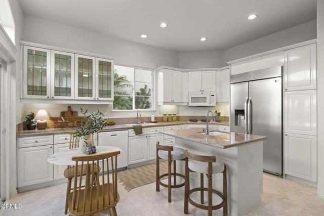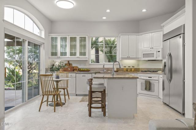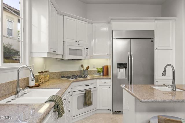 Experience beauty and tranquility nestled in the prestigious Golf Villas II gated community beside Spanish Hills Club. This light-filled, thoughtfully designed home offers a perfect blend of style, comfort, and unparalleled outdoor living with some of the best golf course, field and mountain views in the neighborhood.Step inside, be welcomed by high ceilings and an airy, open layout that radiates warmth and charm. Inviting living spaces feature a cozy fireplace that seamlessly flows into a private patio--ideal for soaking in panoramic views. The open kitchen is perfect for culinary enthusiasts, complete with quartz countertops, ample cabinetry, and a stainless steel refrigerator--making meal preparation and entertaining both stylish and functional.Offering a generous backyard--a rare find in this exclusive community. The private outdoor oasis has a built-in bbq and ample space for dining, relaxing, and enjoying Ventura County's mild climate. Whether you're savoring your morning coffee, hosting a gathering, or watching the sunset, this backyard offers an unbeatable setting for memorable moments.Upstairs, the primary suite is a peaceful sanctuary, with a private balcony showcasing stunning views of the golf course and hills. The spa-like ensuite bathroom features dual vanities, a soaking tub, and a glass-enclosed shower, creating the perfect place to unwind. The additional bedrooms provide versatile living options--great for guests, creative pursuits, or a dedicated home office, ideally suited for working from homeThis property truly embraces California living, with access to resort-style amenities, including a community pool, spa, clubhouse, and RV parking. The HOA also maintains front yard landscaping, offering a convenient, low-maintenance lifestyle. This home provides the perfect blend of privacy, luxury, and convenience in one of Ventura County's most desirable neighborhoods.Ideally located just minutes from Camarillo's best dining, shopping, beaches, and the airport, with easy access to the 101 Freeway for a quick drive to Ventura, Malibu, or Santa Barbara. Don't miss the chance to own one of the most desirable properties in Golf Villas II--schedule your private tour today and experience fantastic views and the best of coastal living.