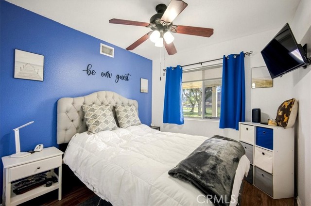GREAT LOCATION AND PRICED TO SELL! Welcome to this beautiful San Jacinto–style 2-bedroom, 2-bath condo perfectly situated on the 18th fairway (near the green) in the highly desirable, 55+ guard-gated Sun Lakes Country Club. This home features an open floor plan with high ceilings that create a bright, airy feel while still being warm and inviting. Recent upgrades include newer kitchen countertops, ample cabinetry, newer flooring, an updated primary shower, and a newer HVAC system—making this condo truly move-in ready. Enjoy outdoor living on the covered patio with serene golf course views. The HOA provides exceptional value, including Spectrum cable and Wi-Fi, front-yard landscaping, and access to a private pool exclusive to the condo community, along with use of Sun Lakes’ main pools and amenities. A secondary HOA covers roof, exterior paint, termite treatment, and exterior pest control for low-maintenance living. Ideally located within walking distance to local shopping, the main clubhouse, restaurant, and entertainment venues. Additional guest parking is conveniently located directly in front of the unit, and nearby walking paths are perfect for you and your pet. Just minutes away from Morongo Casino Resort & Spa, dining, Cabazon Outlets, and the charm of Palm Springs. A complete package in an exceptional community— Welcome to Sun Lakes!