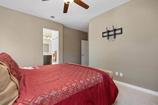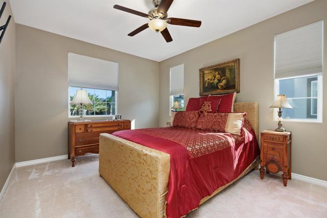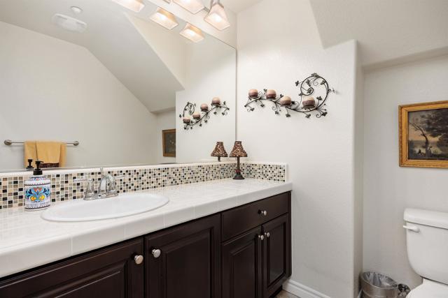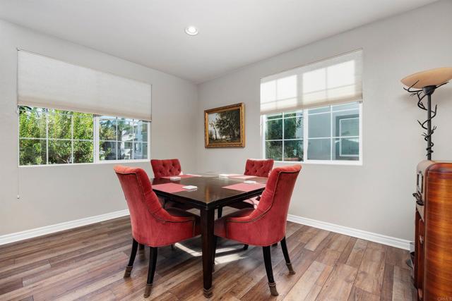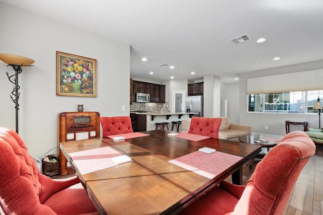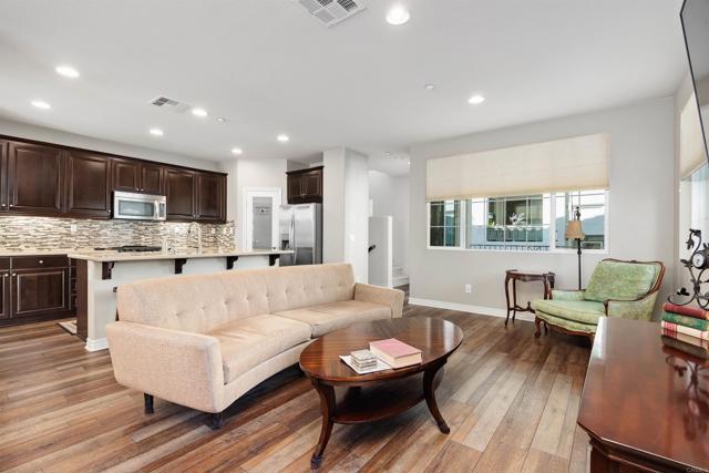 Wonderful opportunity to own a spacious end-unit townhome in the highly sought-after Magnolia at Old Creek Ranch. This three-story floor plan offers privacy with only one shared wall, an attached 2-car garage, and a location close to the pool yet nicely tucked away. The entry level features a flexible bonus room with a half bath, ideal for a guest suite, home office, gym, or private retreat separate from the main living areas. The main living level showcases an open, airy layout with a gourmet kitchen featuring quartz countertops, stainless steel appliances, tile backsplash, a large center island with bar seating, and a walk-in pantry. The spacious living room is filled with natural light and opens to a dedicated dining area. The entire level offers wood flooring, a half bath, closet laundry with full-size washer and dryer, and a private balcony with pool views—perfect for morning coffee or grilling. Upstairs, the primary suite includes a well-appointed bath with dual sinks, tile backsplash, separate tub and shower, and a walk-in closet with ample storage. Two secondary bedrooms share a Jack-and-Jill bathroom, with ceiling fans and pull-down shades in all bedrooms. Additional highlights include an oversized 2-car garage with easy alley access. Magnolia residents enjoy resort-style amenities including a pool, spa, BBQ area with multiple grills and covered seating, firepit, tot lot, and nearby hiking and biking trails. Ideally located in San Marcos, offering award-winning schools, abundant shopping and dining, easy freeway access, and just 20 minutes to the beach.