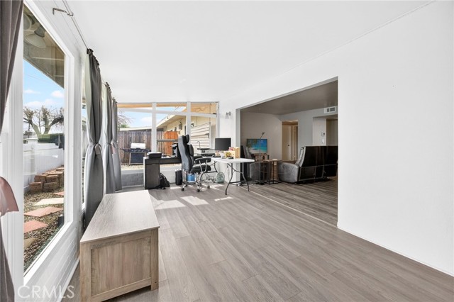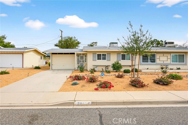 Welcome to this gorgeous and cozy 55+ home located in the heart of Sun City! This recently remodeled, turn-key residence features easy-to-maintain LVP flooring and a newly remodeled, upgraded kitchen equipped with stainless steel appliances. Newer windows enhance energy efficiency and natural light throughout the home. The spacious living room opens to a bright patio sunroom with beautiful views and no rear neighbors, creating the perfect space to relax or entertain. This home offers two bedrooms and two newly remodeled bathrooms, thoughtfully updated for comfort and functionality. Additional highlights include a completely remodeled kitchen, a one-car garage with direct interior access, driveway parking, and a vinyl-fenced backyard with a beautiful view—ideal for weekend BBQs, or enjoying your morning coffee outdoors. Situated in the highly desirable Sun City community, residents enjoy access to HOA amenities including a clubhouse, pool, jacuzzi, and a wide variety of social activities. The HOA conveniently includes: water, sewer, trash, and front yard landscaping. This home is within walking distance to Churches, Walgreens, Stater Bros, Banks, the Post Office, Medical Offices, Restaurants, and Shopping Centers. Don’t miss the opportunity to tour this beautiful home—schedule your showing today!