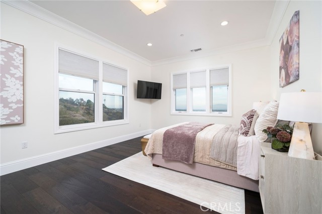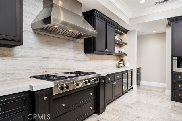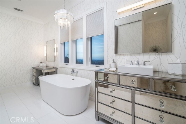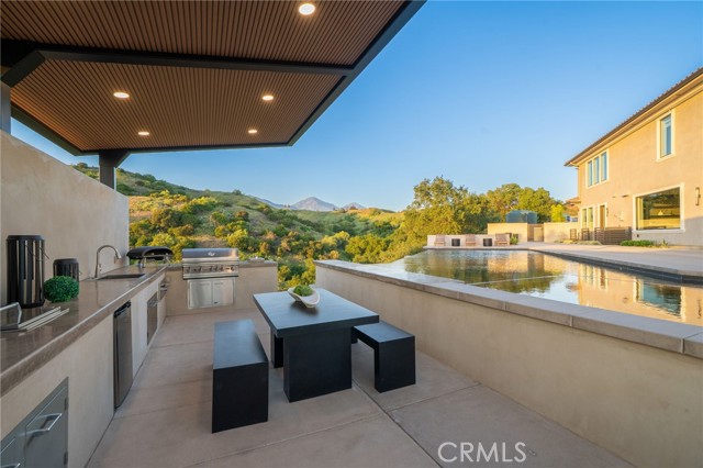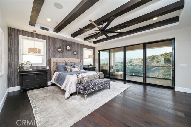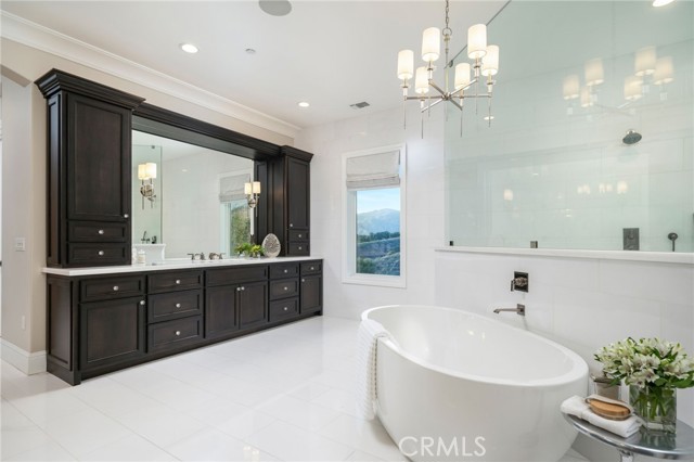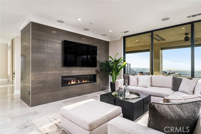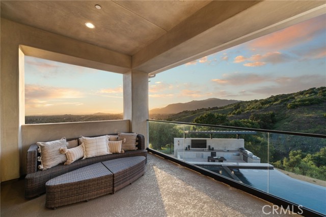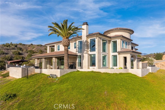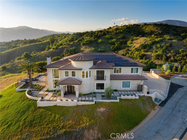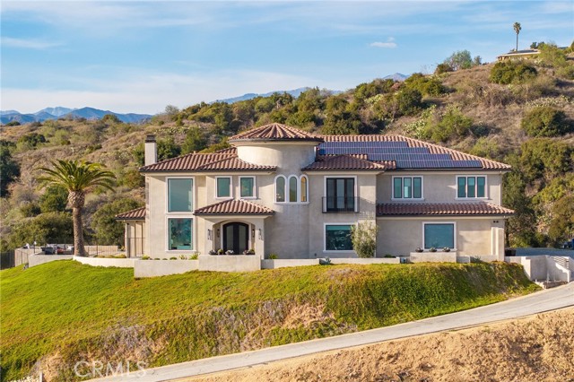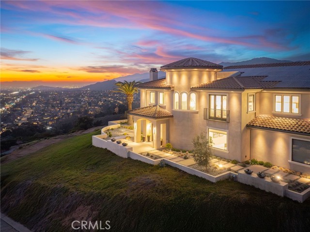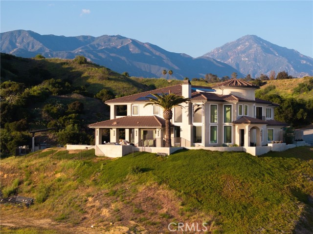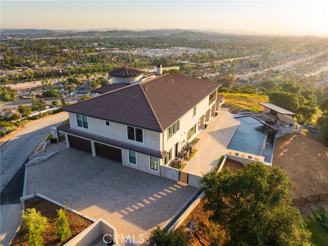 Nestled in the exclusive, gated community of Saddleback Crest Estates, this 2019 custom-built estate offers the ultimate in privacy, luxury, and breathtaking views. Perched high on a hillside, the home boasts panoramic vistas of downtown Los Angeles, the San Gabriel Valley, and the surrounding mountains. As you step through the double door entry, you're welcomed into a grand formal entry and living room featuring soaring 2-story ceilings, a beautiful fireplace, a dramatic spiral iron staircase, and incredible views. The family/great room is designed for seamless indoor-outdoor living, w/37’ retractable glass doors framing the spectacular city lights & pool views. A cozy gas fireplace, glass-enclosed courtyard w/a soothing fountain, and a spacious seating area create an atmosphere of relaxation and sophistication. The chef-inspired kitchen is a dream, w/a large center island, stained cabinetry, quartzite counters, Wolf stainless appliances, built-in refrigerator, coffee bar, and custom walk-in pantry. The dining area is perfect for evening meals, w/custom built-in China cabinetry. Work from home in style in the private office, featuring built-in shelves and cabinetry. A spacious guest suite w/an en-suite bathroom and direct access to the pool area is also on the main level, along w/a powder room. Upstairs, the luxurious primary suite is a serene retreat w/an open beam ceiling, a private balcony w/breathtaking views, and a cozy fireplace. His & hers walk-in closets, a refreshment area w/Sub-Zero refrigerator, and lighting. The spa-like primary bath offers two separate vanities, an oversized soaking tub, and a walk-in shower w/multiple shower heads. A children's family room w/built-in desks provides the perfect space for play and study. The upper floor also features two additional bedroom suites, a fifth bedroom ideal for a gym, an extra powder room, and a dedicated laundry room. Step outside to your own private oasis, where the infinity-edge pool and oversized spa w/swim-up counter and Baja shelf are designed for relaxation and entertainment. The covered patio features a beverage counter w/refrigerator & ice maker, while the California room w/electronic shades offers a perfect spot for lazy afternoons. A fire pit & stunning fountain complete the outdoor space, while a cabana w/built-in BBQ, sink, warming drawer, and refrigerator provides the ultimate in outdoor dining and entertaining. The home also includes a 4-car attached garage and spacious driveway.