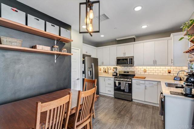 Welcome to the sought-after gated Playa del Sol community, perfectly located near the 905, 805, and 5 for easy commuting. This spacious tri-level condo offers an exceptional layout and is rare for the community: 5 bedrooms and 4 bathrooms, making it ideal for larger households, multi generational living, or flexible work from home space. Step inside from the ground level and you’re immediately welcomed into the bright main living area and open kitchen featuring classic subway tile. The first floor includes a private bedroom suite with a shower, offering great flexibility for guests or extended family. The attached two-car garage with EV charger makes everyday life easier, especially when you’re hauling in groceries. Upstairs, the second floor offers three additional bedrooms, including a generous Primary Suite with dual closets and dual sinks. The third floor provides even more versatility with another bedroom and full bathroom, plus access to a spacious balcony — perfect for morning coffee or evening sunsets. Enjoy resort-style living with community amenities including a pool, clubhouse, and BBQ area. Buyer to assume solar lease.