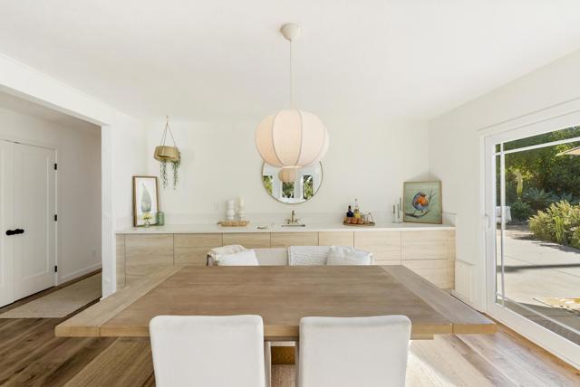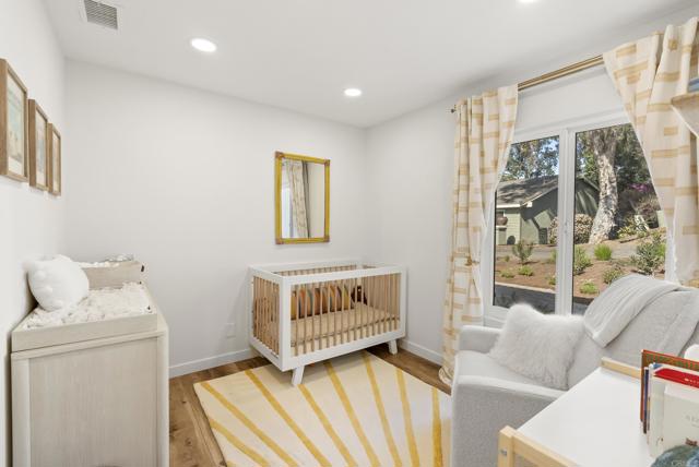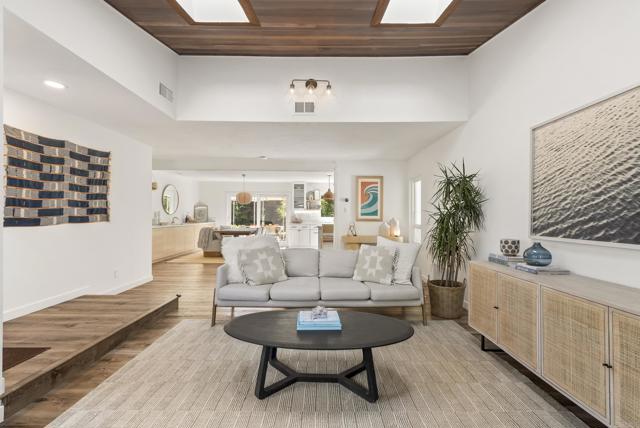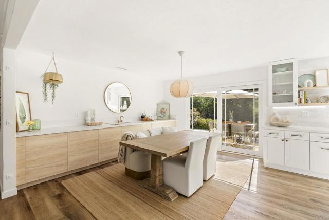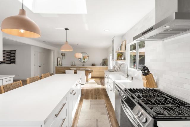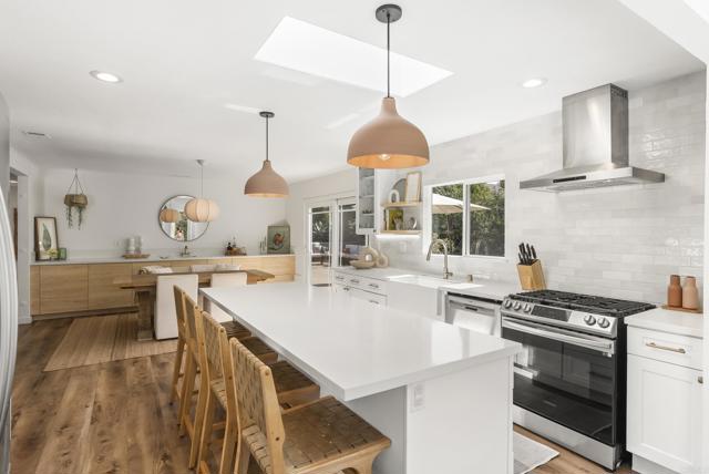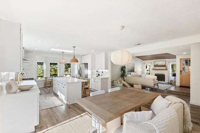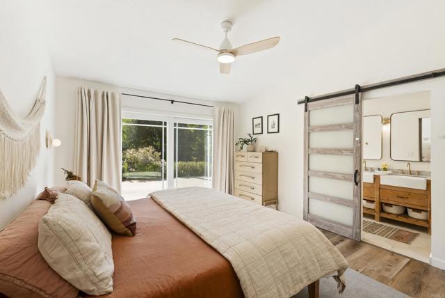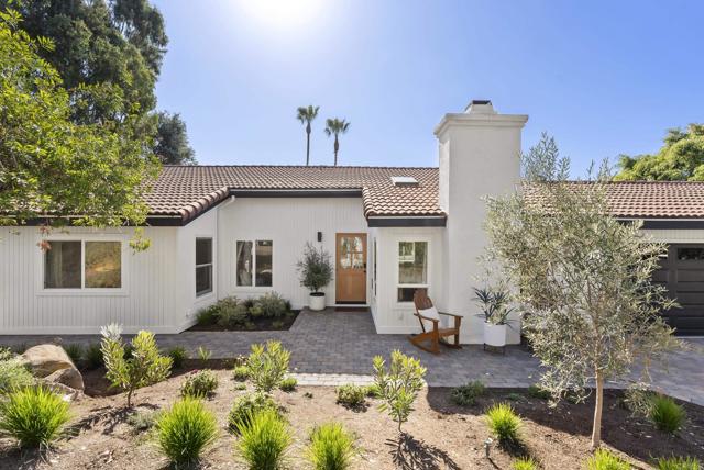 This exquisite modern styled single-level home boasts an estimated 1,586 square feet of meticulously upgraded living space, designed with an open floor plan that embraces both style and functionality. Nestled at the end of a private road within the Fire Mountain neighborhood, this home offers a blend of privacy and accessibility, making it a perfect retreat from the bustle of everyday life. The home offers three bright and comfortable bedrooms and two beautifully appointed bathrooms. The heart of the home is the upgraded kitchen, which seamlessly flows into the dining room and living area, perfect for entertaining or enjoying cozy evenings. The south facing windows provide sweeping views of the valley and lush landscape, bringing the serene outdoors in and filling the space with natural light. Situated on a sprawling half acre lot, this property highlights a large private lot adorned with a beautiful garden. Outdoor enthusiasts will appreciate beautiful sunsets on the expansive concrete patio with multiple sitting areas, ideal for dining al fresco, and a lush, secluded environment complete with mature trees, large grassy backyard, and vibrant garden. Whether you're sipping morning coffee on the patio or entertaining guests, the outdoor spaces provide endless opportunities for relaxation and enjoyment. Amenities include air conditioning for year-round comfort, two car garage, new fencing, and newly added paver driveway. Experience modern living at its finest with this Oceanside gem, where every detail has been thoughtfully curated to create a harmonious living experience.