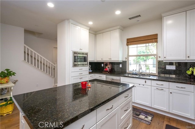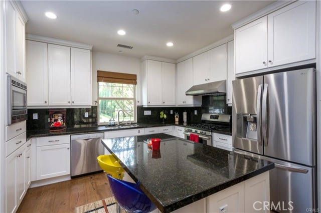 Gorgeous 3 Master bedrooms (one on first floor) , plus large loft, walking distance to Cypress Elementary (Gold Ribbon school) and walk to Jeffrey Trail Middle School within Irvine High boundary. TESLA SOLAR panels will save you money on your utilities! This wonderful home has the most beautiful real hardwood wide plank floors throughout all living areas, you will fall in love! Double chandeliers hang from the two story ceilings with high windows all around. The large kitchen offers a big center Island with bar stool seating, All stainless steel appliance by Bosch, Gas range and convection oven, granite countertops and recessed lighting. The kitchen sink has a nice sunny window. Reverse Osmosis drinking water faucet at kitchen sink and a incredible water filtration soft-water system for the entire home. Great sunny patio area for dining al fresco includes sprinkler system. Main floor bedroom lives like a master with walk-in closet and En Suite bathroom. Downstairs has a half bath for guests. Upstairs offers a large open loft for office or play room and includes a cushioned window seat with storage drawers below seat. Laundry room is enormous with many cabinets for storage and a counter top for folding. Upstairs master is spacious and includes a large walk in closet with built-ins and a window. Dual sink master bath with walk in shower. Addition 3rd bedroom upstairs has a large closet with built-in storage and a attached bathroom with tub/shower. Impeccable and sparking white bathrooms throughout. Direct access garage offers sand tone epoxy floors, tons a white cabinetry and 3 wall bike racks. Home includes tankless water heater as well. TESLA SOLAR designed for 3 people. More then that will require minimal So Cal Edison electric bill. This neighborhood offers great sidewalks and close proximity to parks and schools! Great shopping close by at Cypress Village Center and close to Irvine Spectrum for the best outdoor mall!