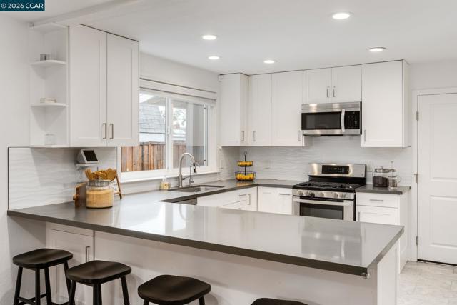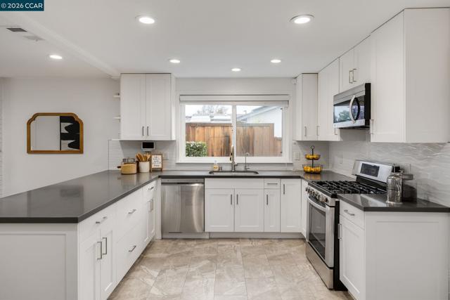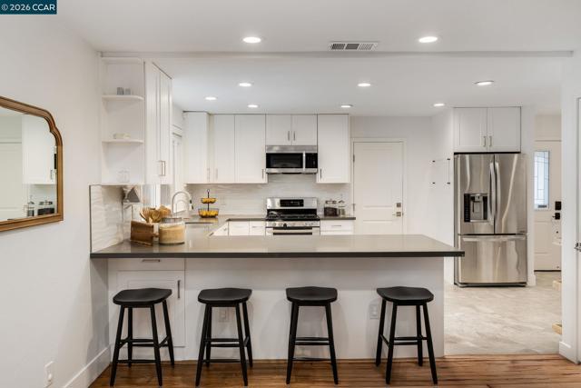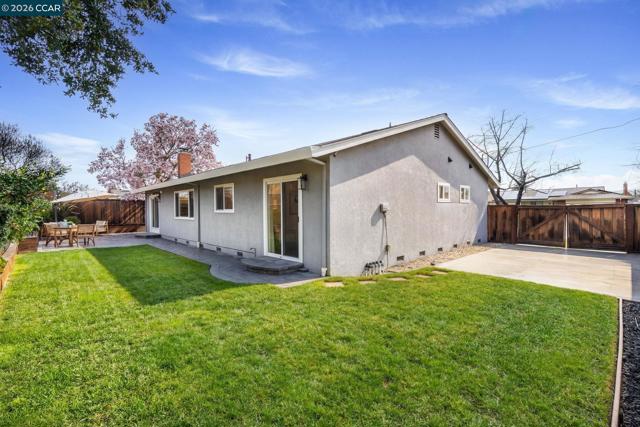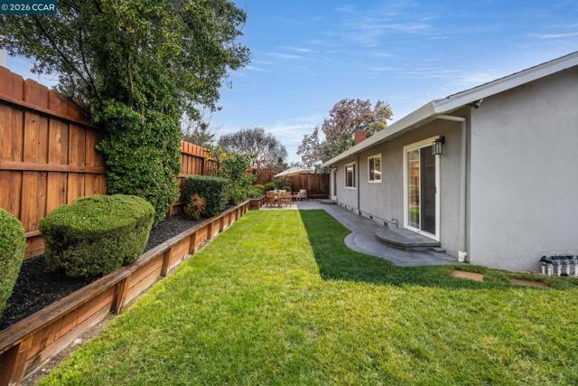 Tucked into one of San Ramon’s most connected neighborhoods, this Northeast-facing single-story rancher offers a warm, welcoming feel from the moment you arrive. A lush front lawn & covered patio set the tone, while natural light highlights stained hardwood floors & a calm, neutral palette throughout. The open kitchen sits at the heart of the home, w/ white shaker cabinetry w/ soft-close drawers, stone countertops, stainless steel appliances, a pantry, & a breakfast bar that invites gathering. It flows seamlessly into the dining area, anchored by a brick hearth fireplace & sliding glass doors that open to the backyard. The living/family room includes recessed lighting & a built-in entertainment system. The primary suite offers mirrored closet doors & an ensuite bath w/ tile flooring, a stall shower, & stone vanity. 3 additional bedrooms are generously sized, including one w/ direct backyard access. Outside, the backyard features a wrap-around paver patio, lush lawn, lemon & apple trees, & a large side yard w/ RV/boat parking. Additional features include a newer composition roof (2022) & two-car garage. Just minutes from Pine Valley Middle School & Boone Acres Park, w/ quick access to I-680 & the Iron Horse Trail, this home offers comfort, flexibility, & everyday convenience.
