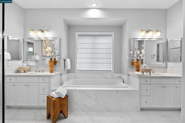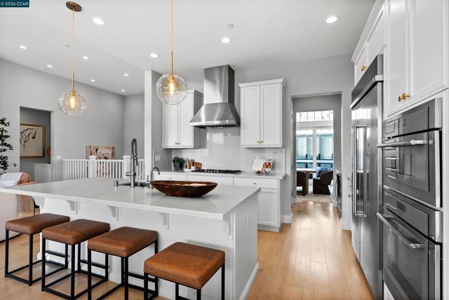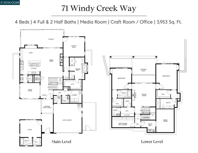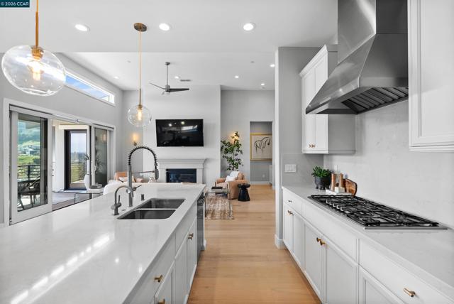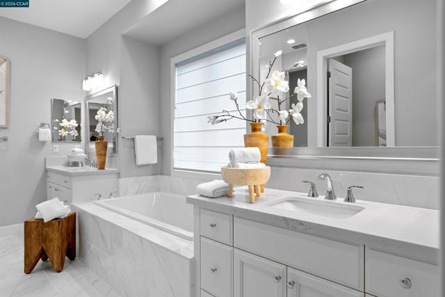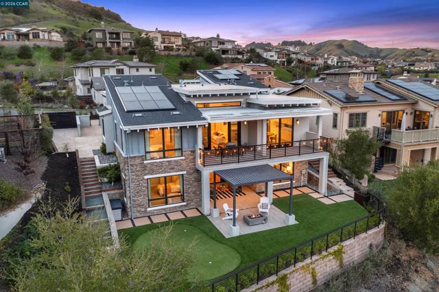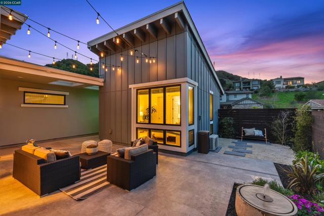 Set within Orinda’s coveted Wilder community, 71 Windy Creek is a semi-custom residence with nearly $600,000 in curated upgrades, thoughtfully designed for comfort, flexibility, and elevated living. The main level features a spacious primary suite, open-concept kitchen opening to a stunning view deck, formal dining flowing to a courtyard patio, and a bright, airy living room with gas fireplace. Downstairs, two additional ensuite bedrooms frame a cozy family room, joined by a media/game room and a home office/flex space. Custom designer chandeliers, new hardwood flooring, curated fixtures, and tailored drapery and window treatments create a refined, cohesive aesthetic throughout. The beautifully landscaped backyard is designed for both relaxation and gatherings, featuring a fire pit, mini golf, tranquil zen garden with water feature, and a charming courtyard with ambient lighting. A detached casita near the front entry offers versatile space for in-laws/guests, gym, or home office. Owned solar with battery backup adds efficiency and peace of mind. Residents of Wilder enjoy over 1,300 acres of open space, scenic trails, access to the Quarry Clubhouse with state-of-the-art fitness center and swimming pool, and five sports fields—delivering an elevated yet effortless lifestyle.