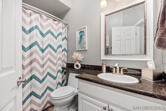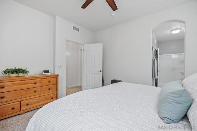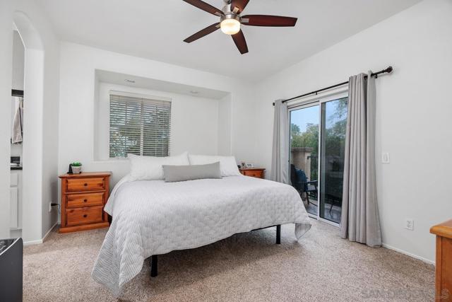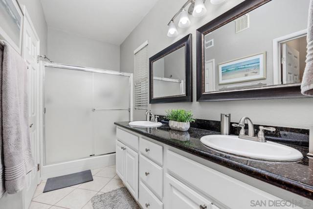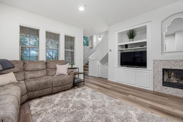 Beautiful light and bright corner unit in the Cascada complex of Rancho Carrillo! This tri-level home features 3 bedrooms + an opt office or guest suite. The first floor offers a versatile entry-level office or optional bedroom with a barn door closure, a laundry closet, and an attached two-car garage with epoxy flooring and ceiling storage racks. On the second floor, you will find an open-concept layout with LVP flooring, a spacious family room with a built-in entertainment center, a cozy fireplace, and a dining area. The updated kitchen showcases granite countertops, white cabinetry, and stainless steel appliances, leading out to a balcony with westerly sunset views. This level also includes one bedroom and a full guest bathroom. The top floor provides maximum privacy with a primary suite featuring a spa-inspired bathroom, built-in closet organization, and it's own balcony. The third bedroom also includes an ensuite bathroom. Additional highlights include fresh interior paint, a newer A/C unit (2024), security system, Ring doorbell, granite countertops in the bathrooms, and carpet overlaying the 2nd staircase. Residents of the Cascada community enjoy a private pool and spa, plus access to the Rancho Carrillo Swim Center’s year-round heated pool, clubhouse, and BBQ areas. The home is ideally located near Leo Carrillo Ranch, Legoland, Carlsbad beaches, and award winning SMUSD!