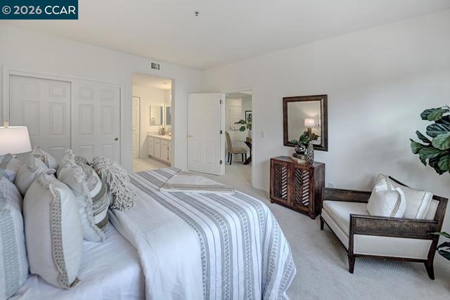 Lovely 2 Bedroom/2Bathroom Shelbourne on the 2nd floor in The Waterford building. Light and bright, cabinets and walls have been painted white, with beautiful new light carpet that really make this home shine. This unique split floorplan features a bedroom and a full bath on each side of the residence, offering privacy and convenience. Home includes an in unit Washer and Dryer. Covered parking space #110 and a 3'x5' storage unit. Residents will enjoy a daily meal in the charming Dining Room and benefit from weekly housekeeping services. The Waterford offers a vibrant community with activities such as bridge, movies, exercise classes, and more! Steps away from the Tice Creek Fitness Center and Gateway Plaza with a library, art & woodworking studios, ceramics and jewelry making studio and so much more!
