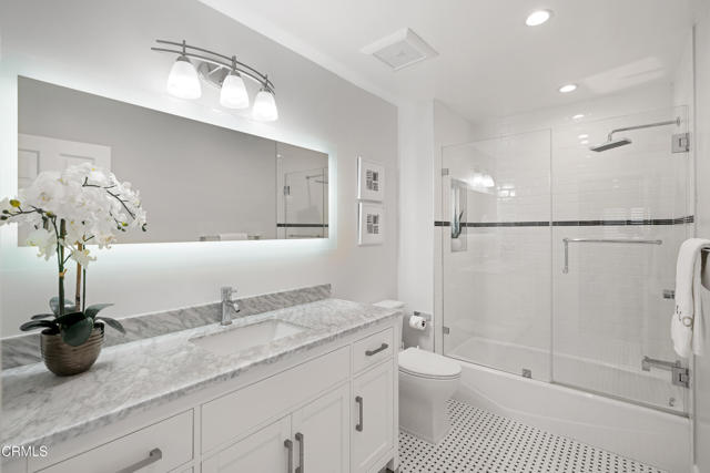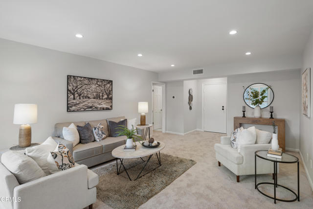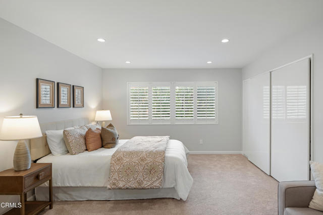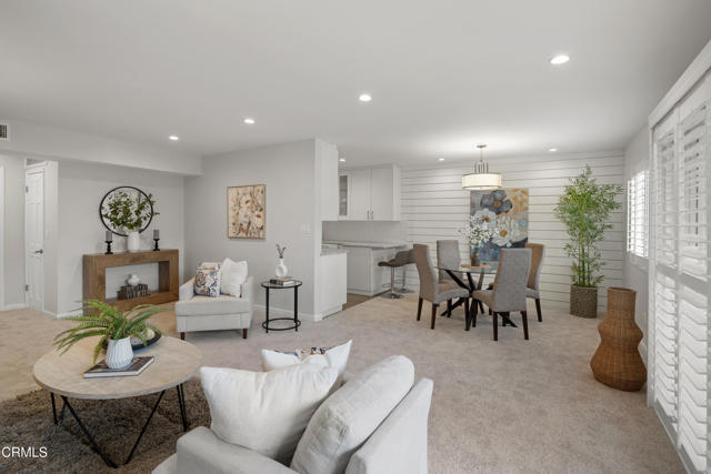Welcome to Casa Serena, where comfort, style, and Pasadena living come together seamlessly. Come inside this beautifully updated residence and be greeted by an open, light-filled living space featuring recessed lighting and plush new carpeting. A large sliding glass door opens to an expansive private balcony, perfect for morning coffee or evening relaxation, enhanced by elegant wood-louvered shutters that add both character and privacy. The living area flows effortlessly into the dining space, highlighted by a stylish shiplap accent wall that creates a warm and inviting focal point. Just beyond, the thoughtfully remodeled kitchen blends form and function with sleek quartz countertops, shaker-style cabinetry, recessed lighting, and a furniture-front dishwasher designed to disappear into the cabinetry for a clean, modern look. An electric cooktop, range hood, built-in oven, and a generous walk-in pantry with custom shelving complete this well-appointed space. Conveniently located off the entry is a chic guest powder room featuring penny tile flooring, an LED-lit mirror, and additional storage. A hallway closet area with drawers, shelving, and countertop space adds exceptional practicality. Retreat to the expansive bedroom suite, offering new carpeting, recessed lighting, and a custom closet with built-in organizers. The updated ensuite bathroom feels spa-inspired with basket-weave tile flooring, a tub and shower combination enclosed by custom glass doors, a rain showerhead, recessed lighting, and an oversized vanity topped with stone. Casa Serena residents enjoy access to a gated pool and spa, a charming courtyard, and a spacious community laundry room with private storage lockers. Set within a secure building and ideally located near the South Lake District, Old Town Pasadena, Caltech, with convenient access to greater Los Angeles, this turnkey home offers the perfect balance of sophistication, comfort, and location. Experience elevated Pasadena living at Casa Serena.