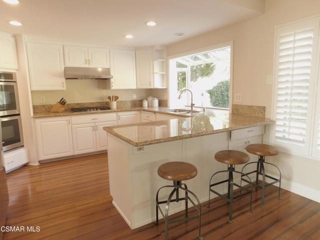 WELCOME to the highly coveted Wildwood neighborhood! Step inside this spacious remodeled 4 bedroom 3 full bath home with large double pane windows and vaulted ceilings which allows an abundant amount of light coming through the Living and Dining Rooms! The step-down Den includes a gorgeous travertine fireplace! To your right, you'll find a bar with built-in shelving to store your favorite wines, glasses and more! Enjoy cooking in the light and bright, updated Granite Kitchen with lots of cabinets, a lazy-susan, stainless steel appliances, including the Refrigerator! You have a choice of dining at the kitchen island with bar stool seating, the Breakfast Nook or in the formal Dining Room! Over the kitchen sink is a large Bay Window, that overlooks the peaceful, spacious backyard with views. There are also views from the upstairs windows in PRIMARY BEDROOM! The large Primary Bathroom Suite offers double sinks, a step-in shower, plus a large/deep clothes closet. Two other Bedrooms upstairs have use of the FULL Bathroom in the hall and the linen closet. MUST HAVE A DOWNSTAIRS BEDROOM and FULL Bath! Washer and Dryer in the convenient INDOOR utility room has lots of cabinet storage! French double doors in the Den opens to the large backyard that has 2 gated side yards (great for a dog run), one side even has a storage shed! 3 CAR GARAGE has easy to clean epoxy floors and direct hookup for TV and lots of storage in the oversized garage! Save energy with ALL Double Pane windows, energy efficient whole house fan, multiple ceiling fans and a newer energy efficient HVAC system! The entire home has recessed LED lighting! Best of all, Wildwood has amazing hiking trails, water falls, a huge park which offers baseball & hockey fields, tennis & basket ball courts and a fun playground for the kids! Award winning Wildwood Elementary School is nearby. Shop at your favorite stores at Trader Joe's, Vons, Ralphs, Sprouts, Starbucks, the Oaks Mall, fine restaurants and more! You deserve this home so hurry before it's gone!
