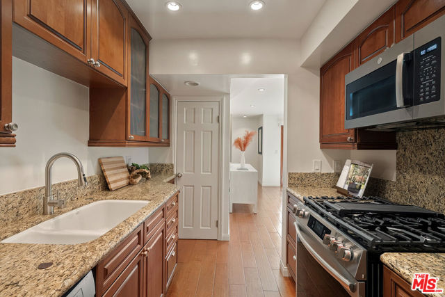 An exceptional opportunity to own a light-filled, timeless 3-bedroom condo just moments from Montana Avenue. This single-level residence offers an airy, open floor plan with hardwood flooring throughout, a beautiful custom wood built-in in the dining area, and a west-facing private balcony that captures refreshing ocean breezes - all less than a mile from the beach. The chef's kitchen features granite countertops and stainless steel appliances, seamlessly connecting to the main living spaces for easy everyday living and entertaining. The current owner has recently updated both bathrooms, elevating the home's quality and design. The oversized primary suite includes a spa-like ensuite with a gorgeous rainfall shower and built-in closets, and the guest bath is replete with stunning glazed tile for a clean, contemporary feel. Additional highlights include in-unit washer/dryer, a gated carport with designated parking, and an HOA that includes earthquake insurance. Located in the highly regarded Santa Monica school district, with effortless access to Montana Avenue's premier shops and dining including favorites like R&D Kitchen, Sogno Toscano, Bardonna, and Courtyard Kitchen - this residence delivers the very best of westside living. Unarguably the best-priced 3-bedroom condo in Santa Monica when considering its refined finishes, timeless appeal, and unbeatable location.