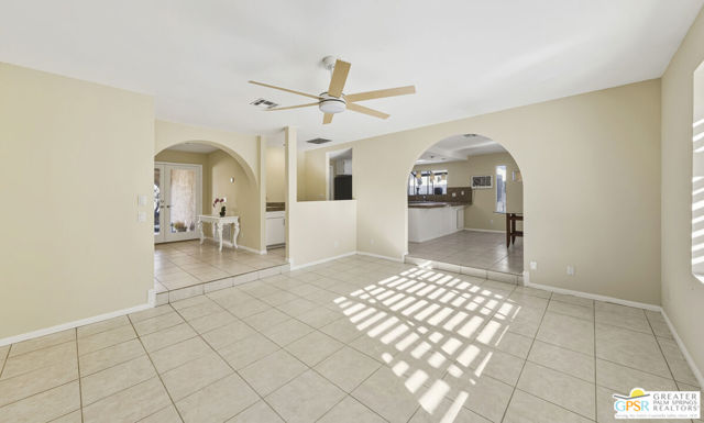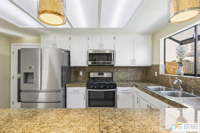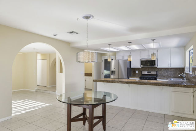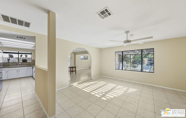 Want privacy? This property is like your own private compound! Step into a bright 3BR3BA spacious home with an open kitchen concept. You have a living room with a fireplace open to the dining area and kitchen plus a step down large great room! Having the same tile throughout the entire interior gives continuity and flow. The kitchen has granite countertops and backsplash with stainless appliances and a 5 burner gas stove. A conveniently located bar area with a sink and great storage is a plus. All the baths have granite, 2 have tiled showers and one has a tub. The primary suite has a large walk in closet and access to the patio & pool. You have lots of storage closets & a walk in pantry which is always a plus. There are 4 arches that enhance the individual character of this home. The mature mixed vegetation in the front gives great curb appeal for this large corner lot. The rear patio with pool boasts amazing mountain views and mature vegetation. Your double garage houses your laundry area. One of your side yards is concrete in case you want to park an RV.