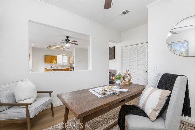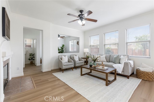 Located within an exclusive gated community in Chino Hills, this three-bedroom, 2.5-bath residence offers 1,923 square feet of thoughtfully designed living space, including a versatile main-level den. One of the rare units that includes a drive way for additional parking. Brand new luxury vinyl plank flooring adorn the freshly painted home. The the open style kitchen includes NEW stainless steel appliances, sample storage space, and stone countertops. Large windows with northern exposure fill the family room and kitchen with plenty of natural light. Another unique opportunity in the community with the *spacious* back yard. Upstairs, a loft leads to the primary suite, which offers a sitting/office area, walk-in closet, and en-suite bath. Two additional sizable bedrooms complete the upper level. Highly rated schools with a shopping center, parks, and hiking trails nearby. Convenient to the 60, 71, and 91 freeways. Newer AC condenser. The community includes a security gate for entry, playground, pool, and visitor parking. HOA maintains front gardening.