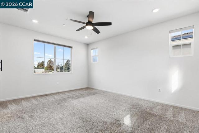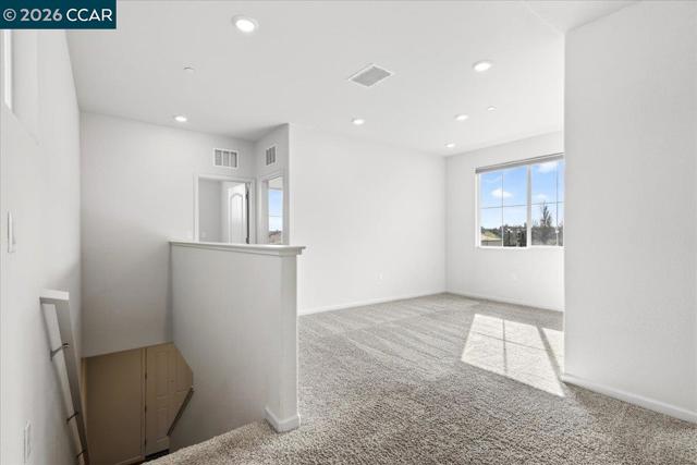 Welcome to this stunning move-in-ready home located in the sought-after Vines at Oakley gated community. This energy-efficient home features owned solar! Built in 2021 by Meritage Homes, this beautiful floor plan blends modern elegance with everyday comfort. The open-concept main level features a spacious living area filled with natural light. The chef's kitchen offers granite countertops, stainless steel appliances, sleek cabinetry, a large island, and a generous pantry. A convenient main-level bedroom and full bath provide the perfect setup for guests and multigenerational living. Upstairs, the luxurious primary suite serves as a private retreat, complete with a spa-like ensuite bathroom with dual vanities, a glass-enclosed shower, soaking tub, and a spacious walk-in closet. You'll also find two additional bedrooms, a full guest bath, a versatile loft space, and a dedicated laundry room on the upper level. Don’t miss the spacious backyard featuring a custom stone patio, perfect for gardening, play, and entertaining, all complemented by a breathtaking sunset view. Perfectly situated near downtown Oakley, with year-round community events, shopping, local schools, and dining. Close proximity to the California Delta offering boating, swimming, fishing, and scenic hiking trails.