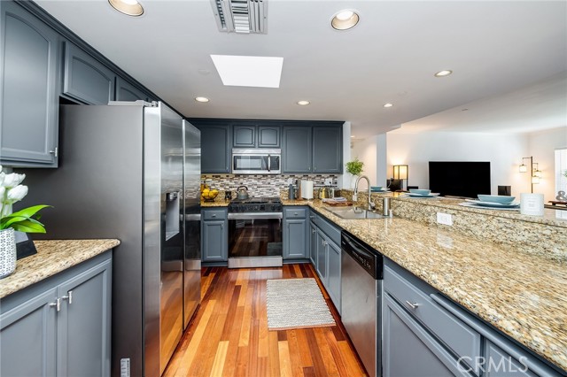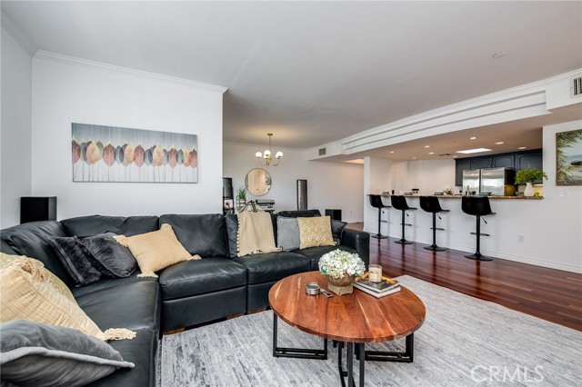 Perched at the top of a boutique Mediterranean building, this corner-unit penthouse in Valley Village feels like a private retreat above the city. With only one shared wall, the home is bright and wonderfully private. Morning light pours into the open living space, hardwood floors warm the room, and French doors open to two front balconies with skyline and mountain views. With three balconies total, there’s always a place to step outside and breathe. The kitchen is the heart of the home—spacious, beautifully finished with granite counters, and equipped with new appliances. Both bedrooms are quiet, comfortable, and newly carpeted. Smart-home upgrades throughout make daily living effortless, from lighting to switches fully compatible with Alexa. Set in one of the most central pockets of the Valley, you’re just a couple miles from Studio City and Sherman Oaks, and about 15 minutes from Beverly Hills and West Hollywood. With only 15 units surrounding a serene open courtyard and two secure parking spaces included, this home blends charm, privacy, and modern convenience in a location that puts all of Los Angeles within easy reach."